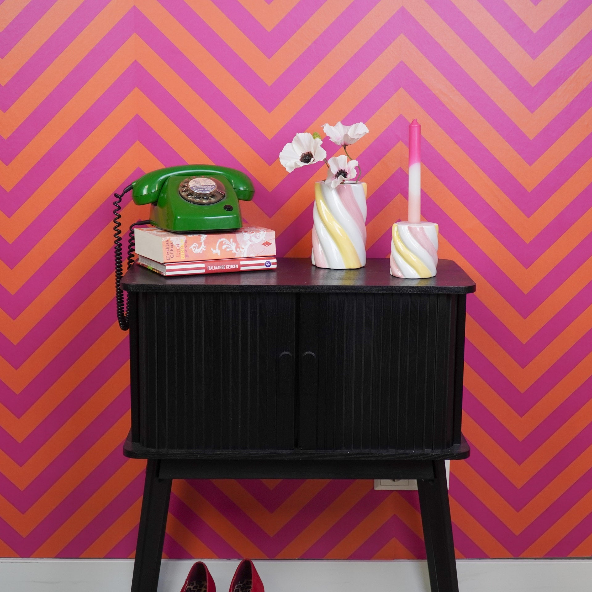Combineer deze kandelaar met andere snoep- of pastelgekleurde accessoires voor een vrolijke en speelse look. Zet er een felgekleurde kaars in, bijvoorbeeld lichtroze of geel, en plaats hem op een dienblad met wat kleine vaasjes en (nep)snoepjes. Zo creëer je een onweerstaanbaar zoet hoekje waar iedereen blij van wordt!