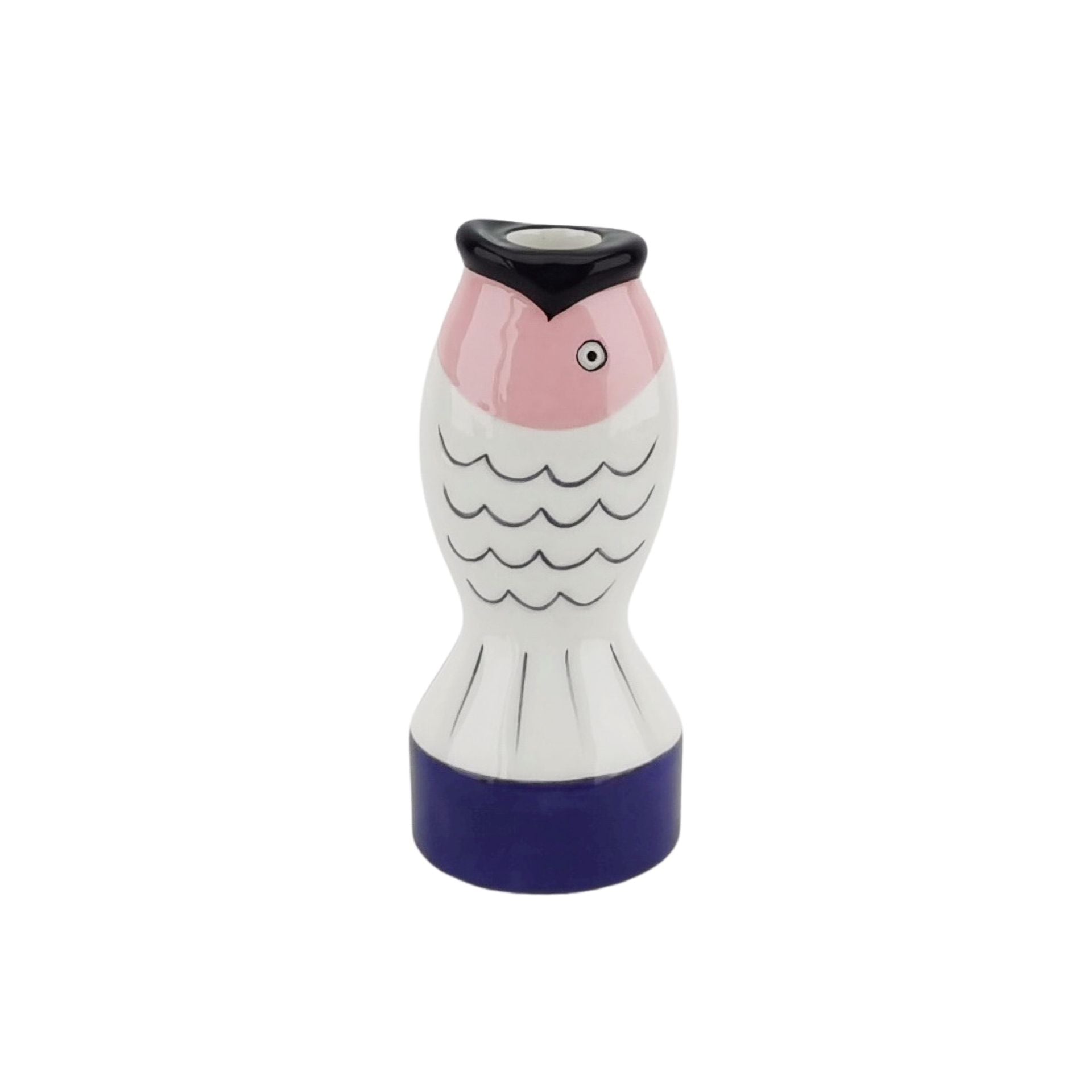 ALS EEN VIS IN HET WATER - Duik in een zee van stijl met deze originele kaarshouder in de vorm van een vis! De frisse kleurencombinatie geeft deze kandelaar een speelse en moderne uitstraling. Gemaakt van stevig dolomiet en met een handig formaat van 7 x 7 x 16,5 cm is deze kandelaar perfect voor op tafel, in de vensterbank of als vrolijk accent op een plank.