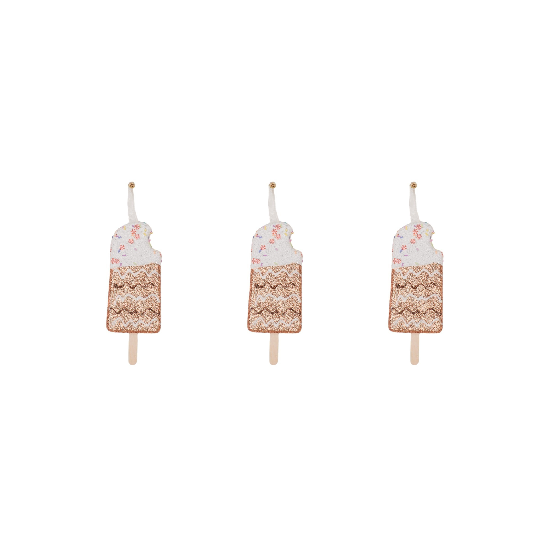 ICE ICE BABY- Op zoek naar leuke kerstversiering die niet breekbaar is? Deze schattige kersthangers in de vorm van ijsjes met houten stokje zijn perfect voor een kleurrijke en feestelijke touch aan je kerstboom! Gemaakt van foam en versierd met glitters, zijn deze meerkleurige hangers een must-have voor de feestdagen. Niet alleen zijn ze super schattig, maar ze komen ook in een set van 3, dus je kunt ze overal ophangen! En het beste nieuws is: ze zijn nier breekbaar!
