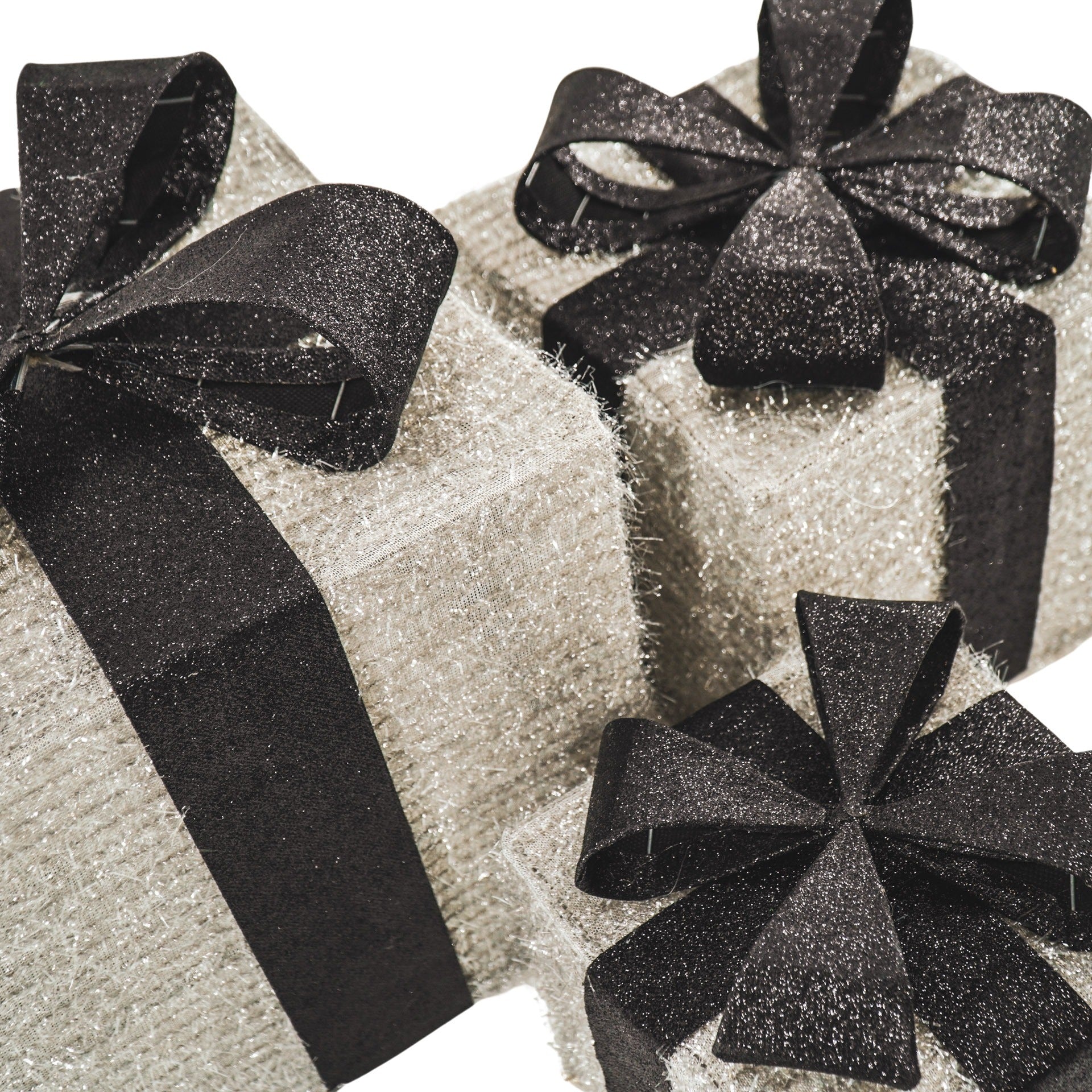 Kerst Led Lamp - Cadeau Set van 3 - Kunststof - Zilver/Zwart - 15cm/20cm/25cm