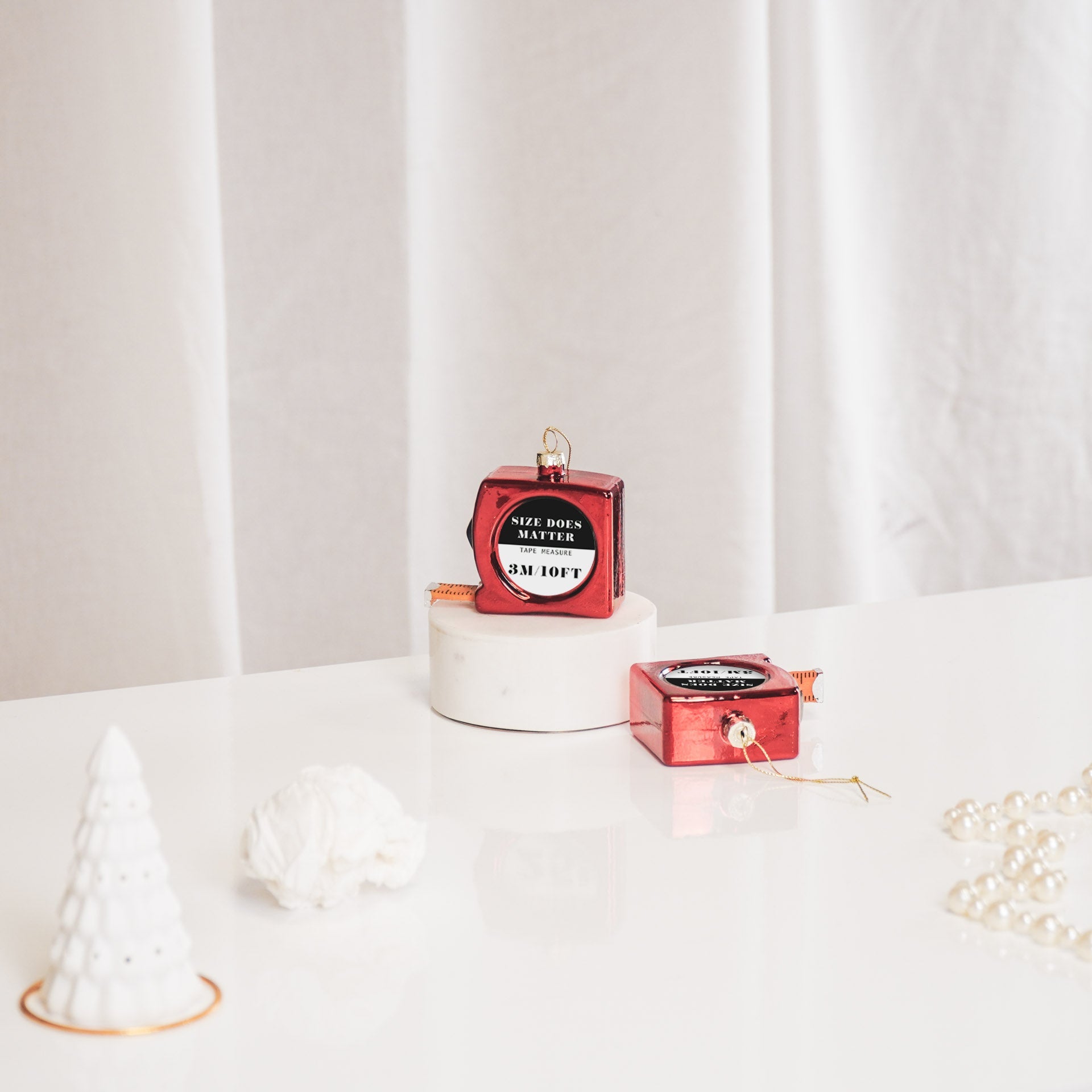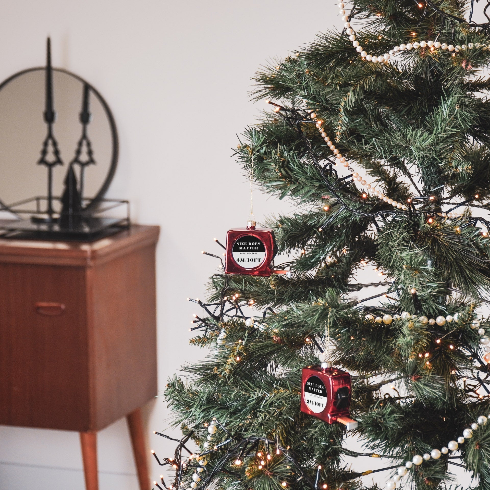 KLUS KERSTBALLEN - Jouw kerstboom is niet compleet zonder grappige kerstdecoratie. Deze set van 2 glazen meetlint kerstballen maken jouw kerst leuker en klusvriendelijk.