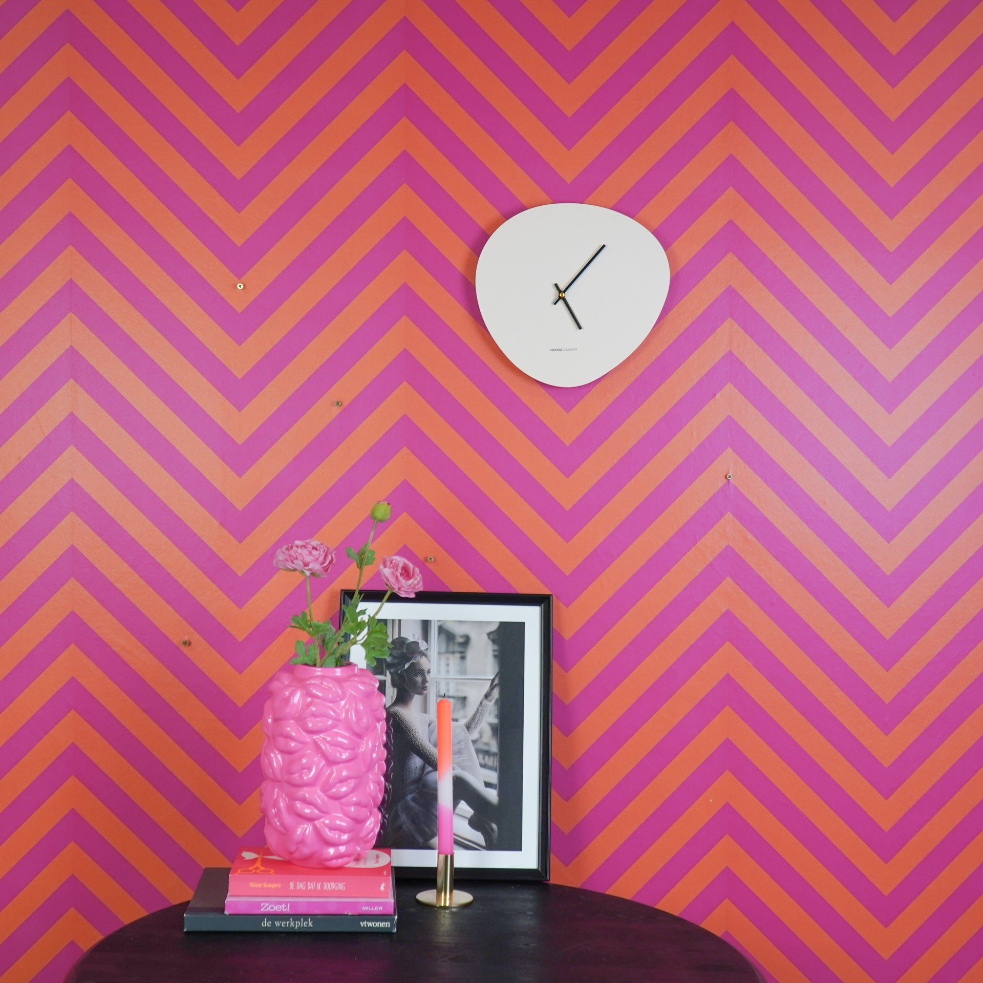 Styling tip: Hang de wand klok in zijn eentje aan de muur of combineer hem juist met andere ronde vormen.