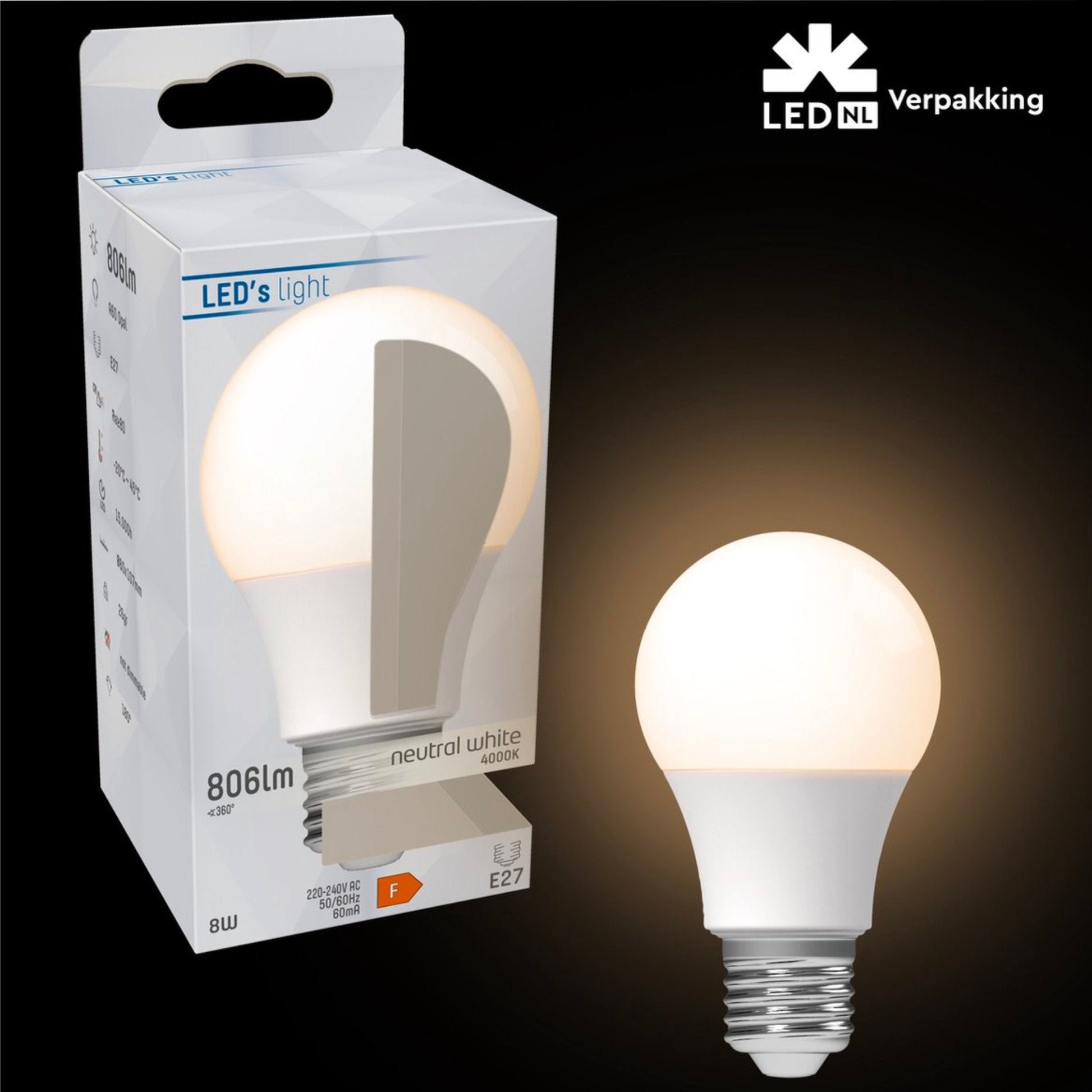 - Verpakkingsinhoud - 1 x LED Lamp Peertje A60 - 8W (60W) - 806 lumen - E27 fitting - Koud wit licht (4000 K)
