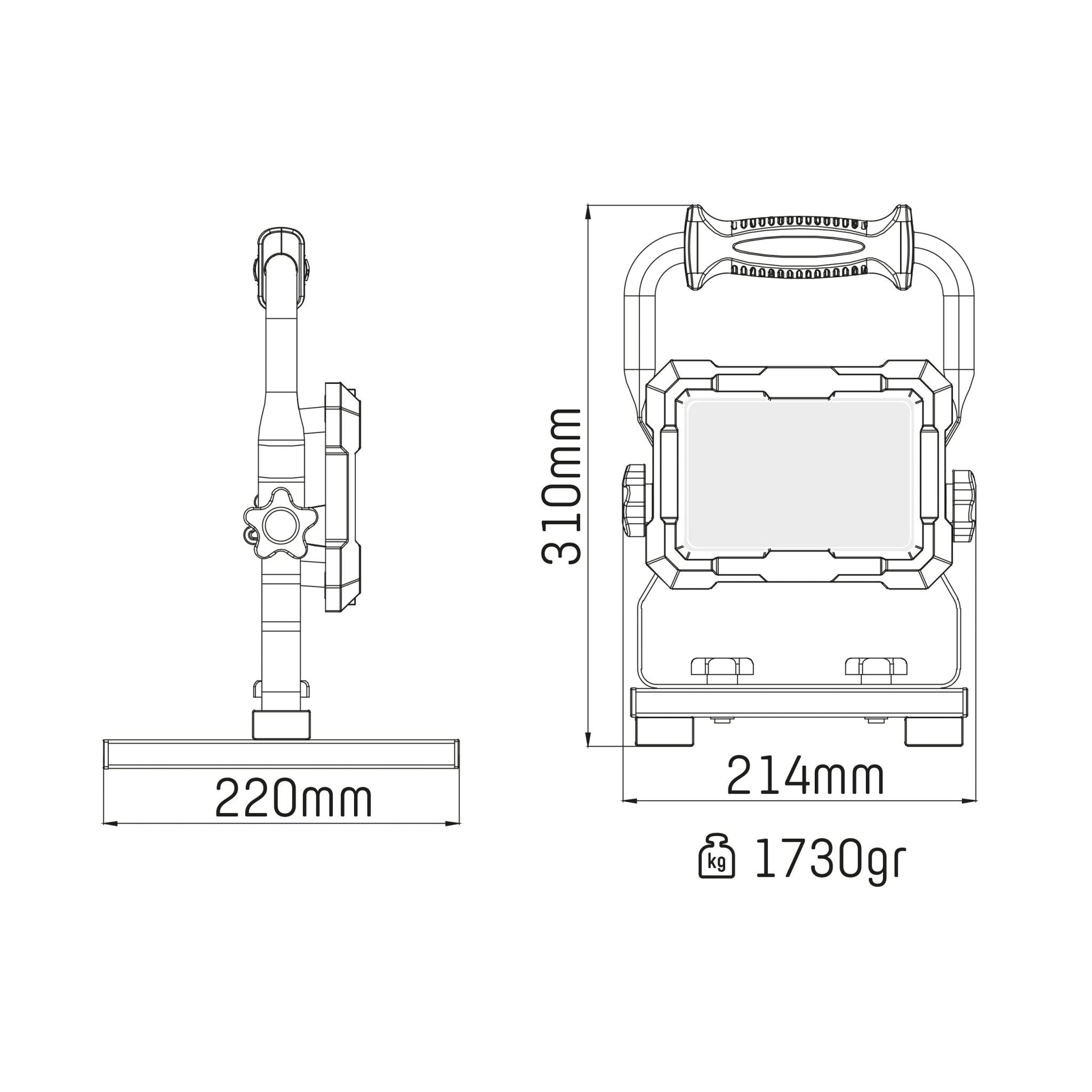 Met een formaat van 214 x 220 x 310 mm is deze bouwlamp relatief compact te noemen. Bovendien neem je hem gemakkelijk mee van plek tot plek door middel van het ergonomisch gevormde handvat. Ook op het gebied van actieradius zit je gebakken, want de 5 meter lange, extra sterke kabel geeft je flink wat bewegingsvrijheid.
