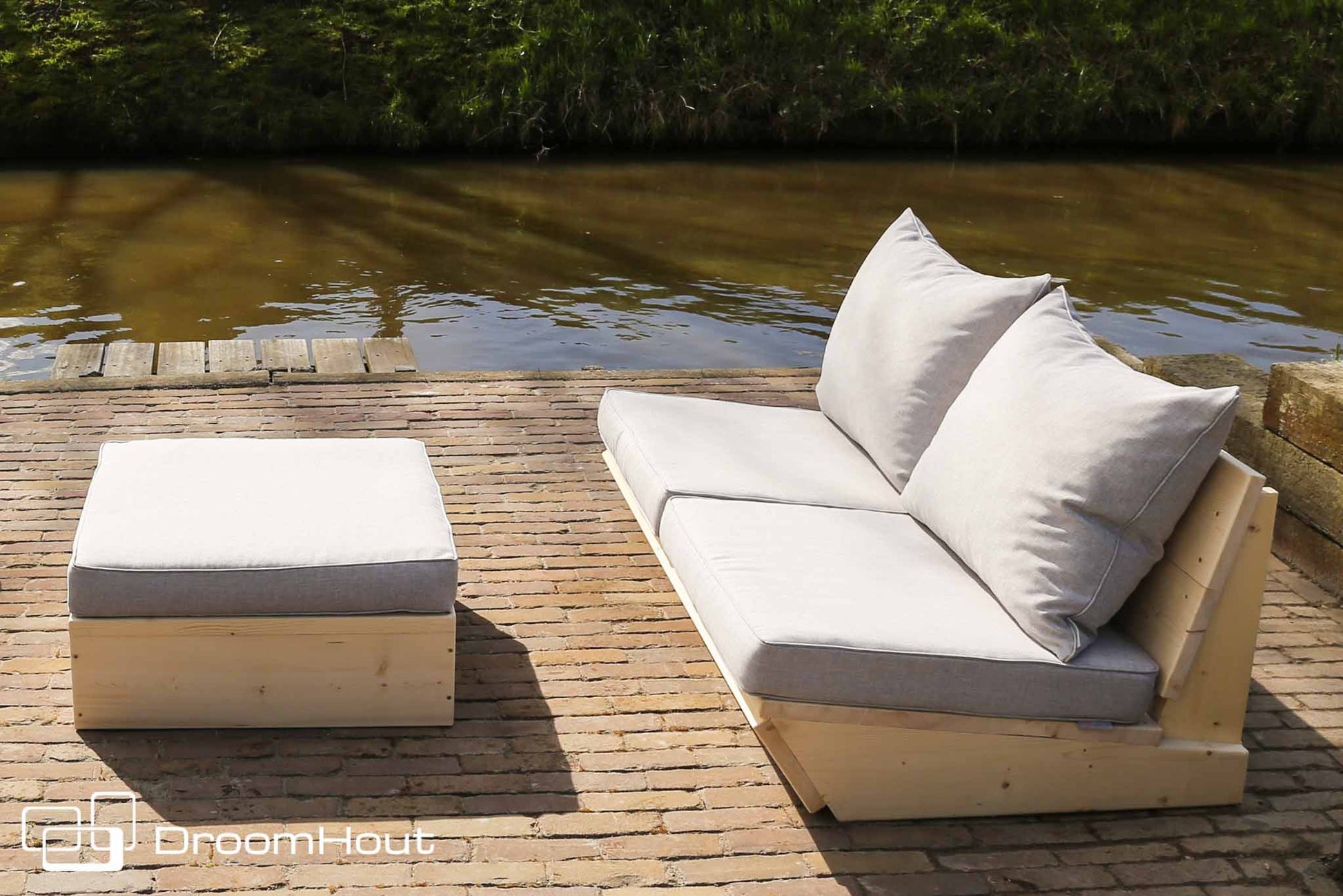 Behalve de grote kleurkeuze heeft de Sunbrella stof als extra leuk voordeel dat het een waterbestendige stof betreft. Deze loungekussens kan je dus het hele jaar door buiten laten liggen.