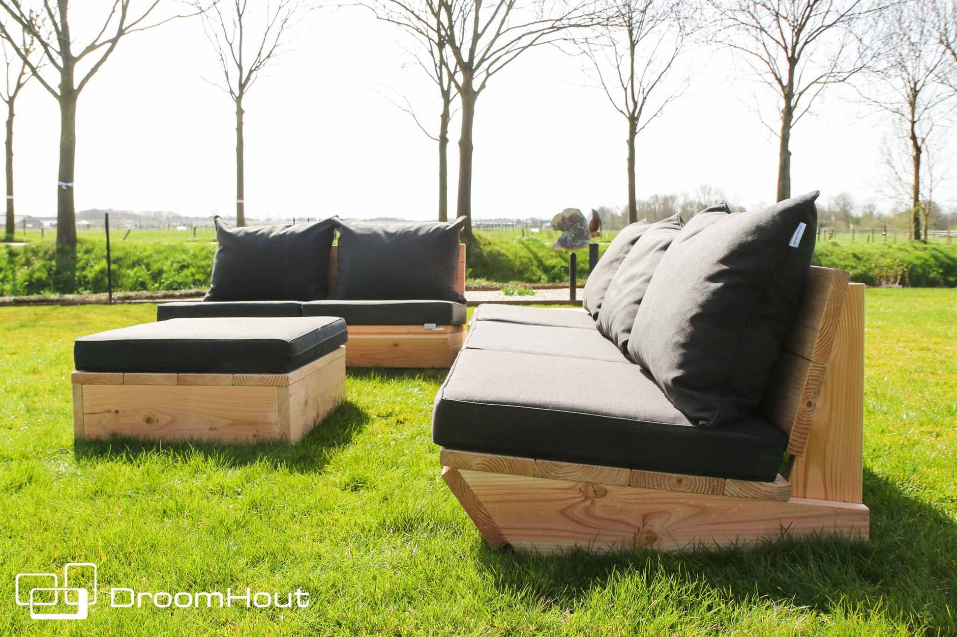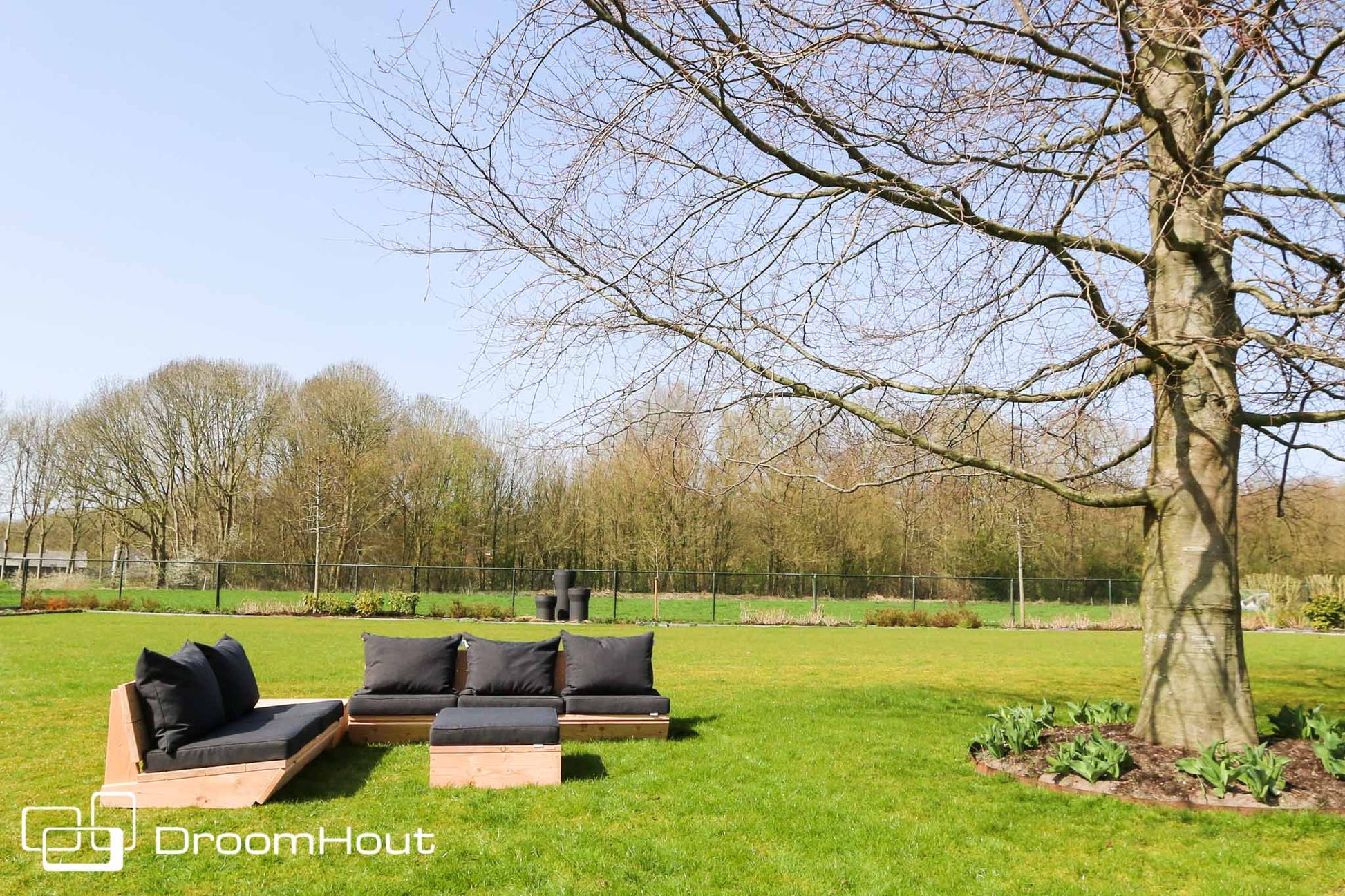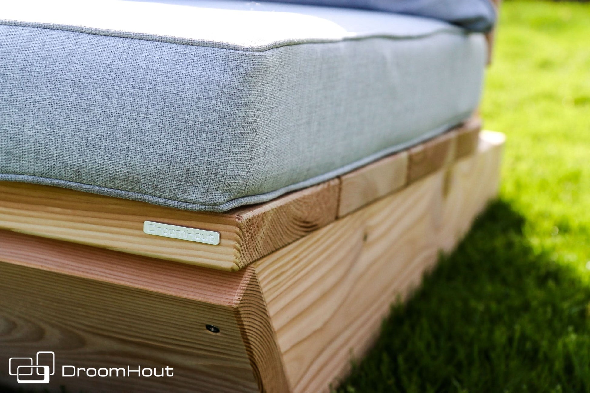 De bijgeleverde loungekussens uit de DroomHout huiscollectie zijn helemaal zelf te personaliseren. Kies jouw droomstof uit en laat het ons weten welke het is geworden. Het voordeel van deze stoffen is doordat er polyester in verwerkt is de loungekussens minder snel verkleuren dan katoenen hoezen. De royale loungekussens hebben maar liefst een zittingmaat van 70 x 70 cm bij een dikte van 12 cm, dat is groter en dikker dan bijna alle andere loungekussens die op de markt verkrijgbaar zijn.