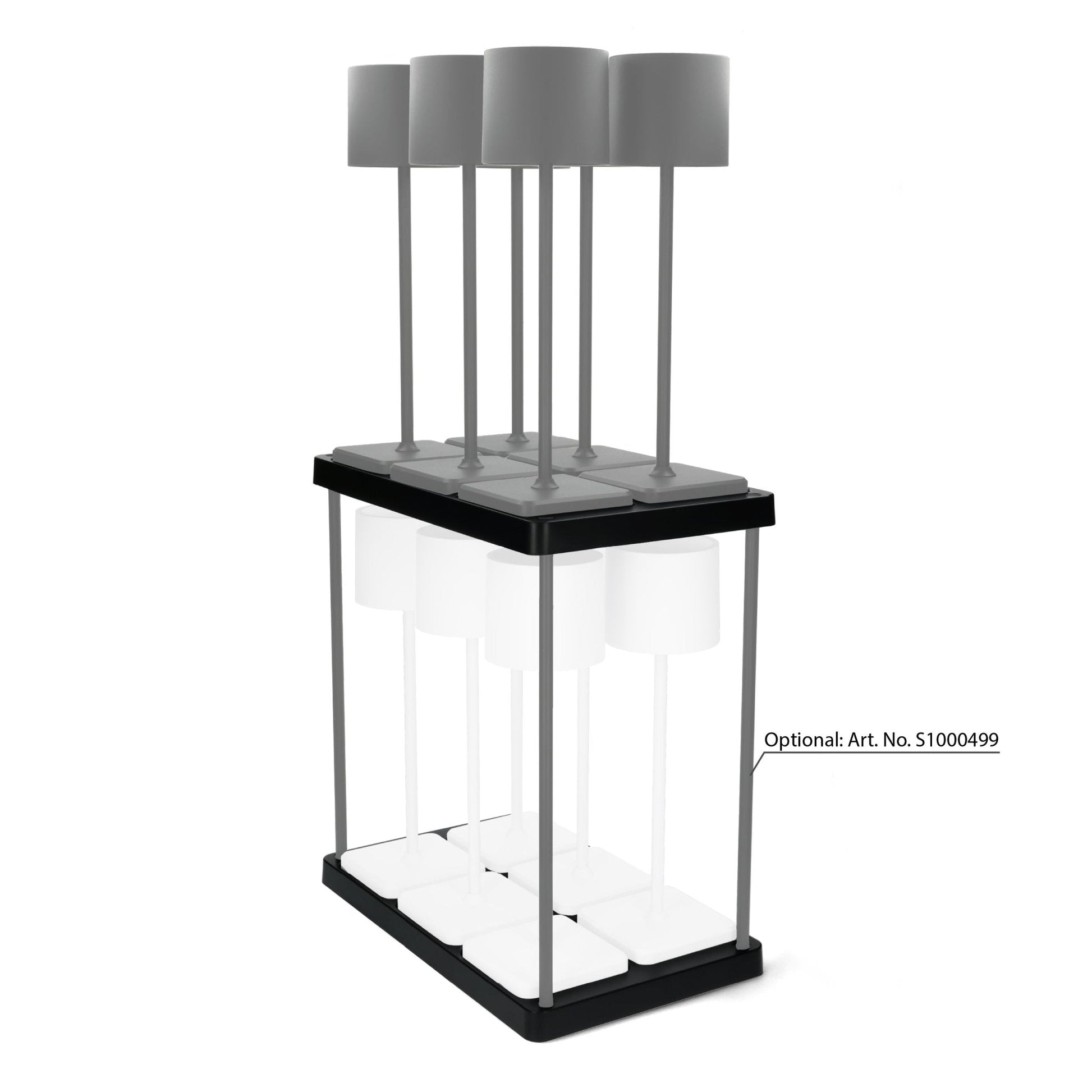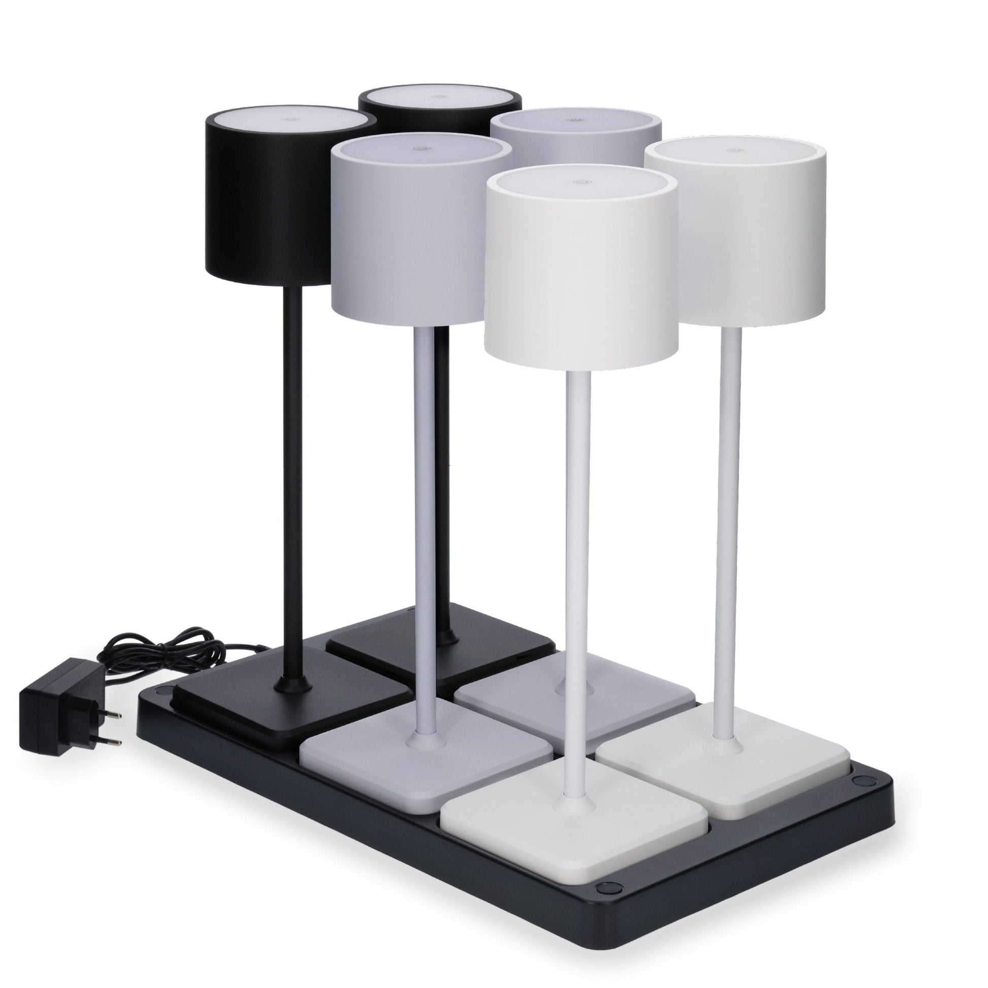 Oplaadstation voor 6 oplaadbare LED tafellampen - Docking met voeding - Zwart