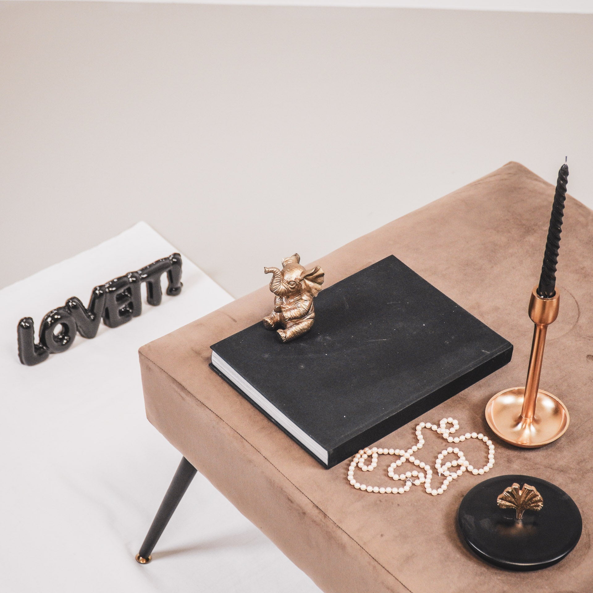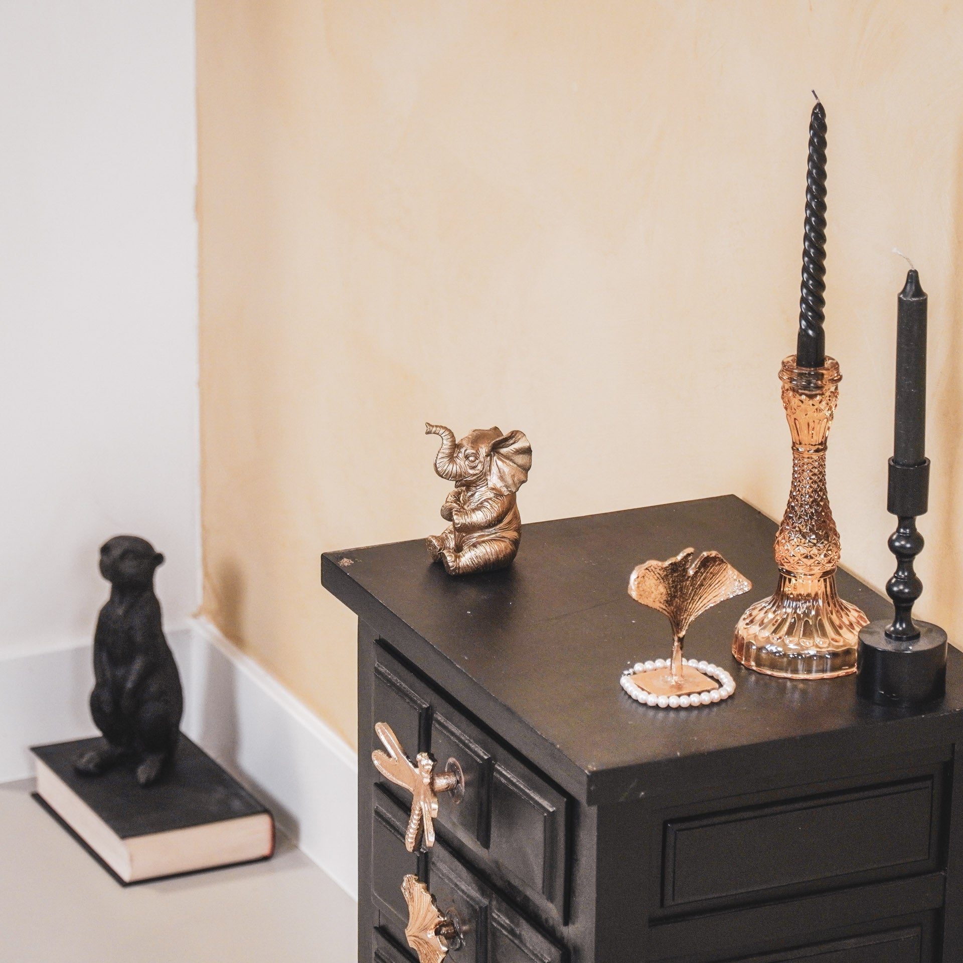 Styling tip: Zet het olifanten beeldje op een stapeltje boeken, zodat hij wat hoogte krijgt.