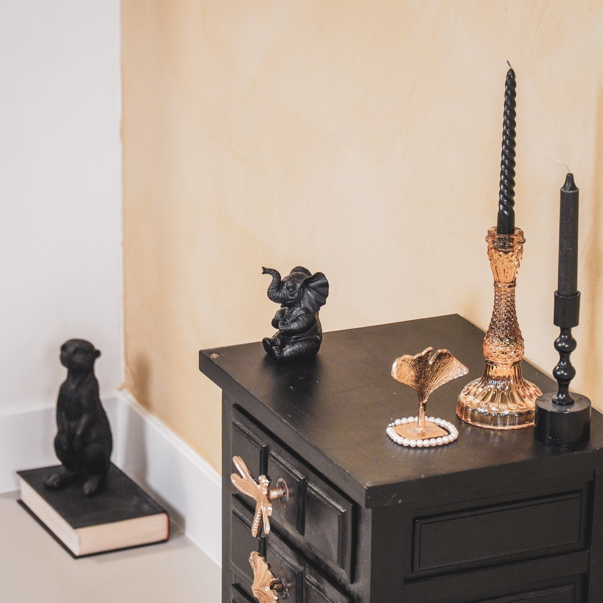 Styling tip: Zet het olifanten beeldje op een stapeltje boeken, zodat hij wat hoogte krijgt.