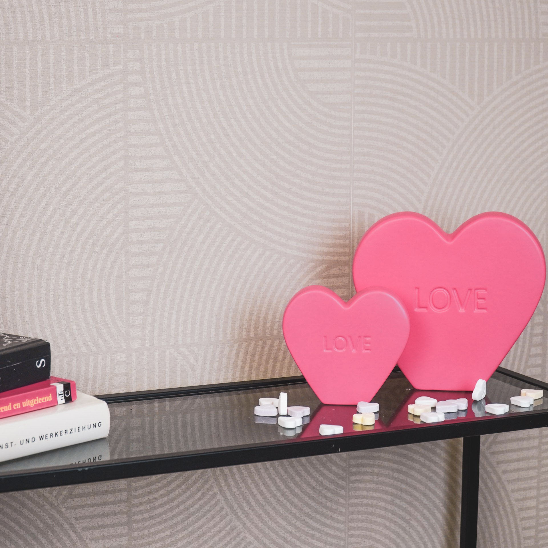 Ornament- Snoephart Beeld 'LOVE'- Keramiek- Fluor Roze- 20x4x18,5cm