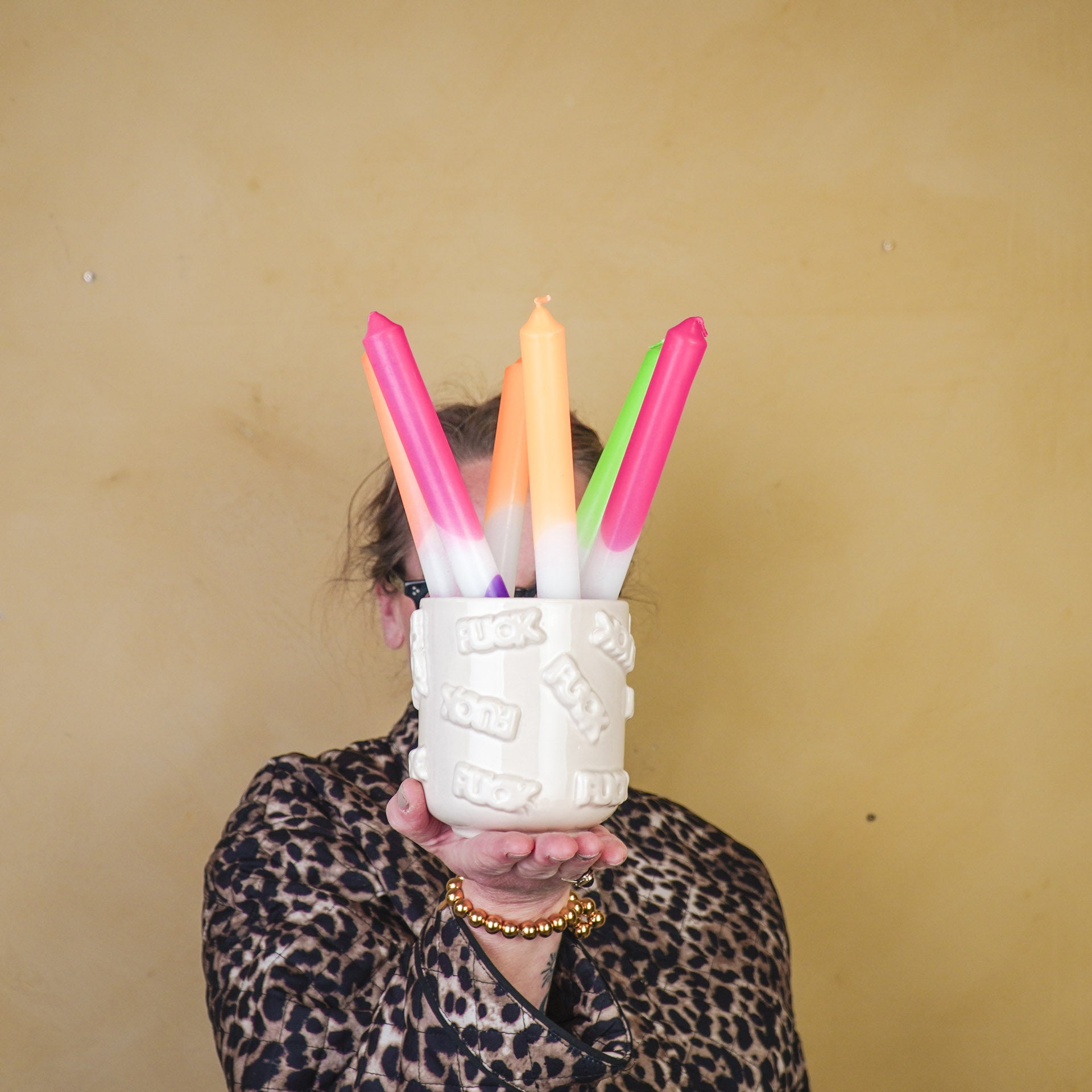 Styling tip: Geef hem een mooie plek ergens in huis, dat verdient deze planten pot met fuck woorden.
