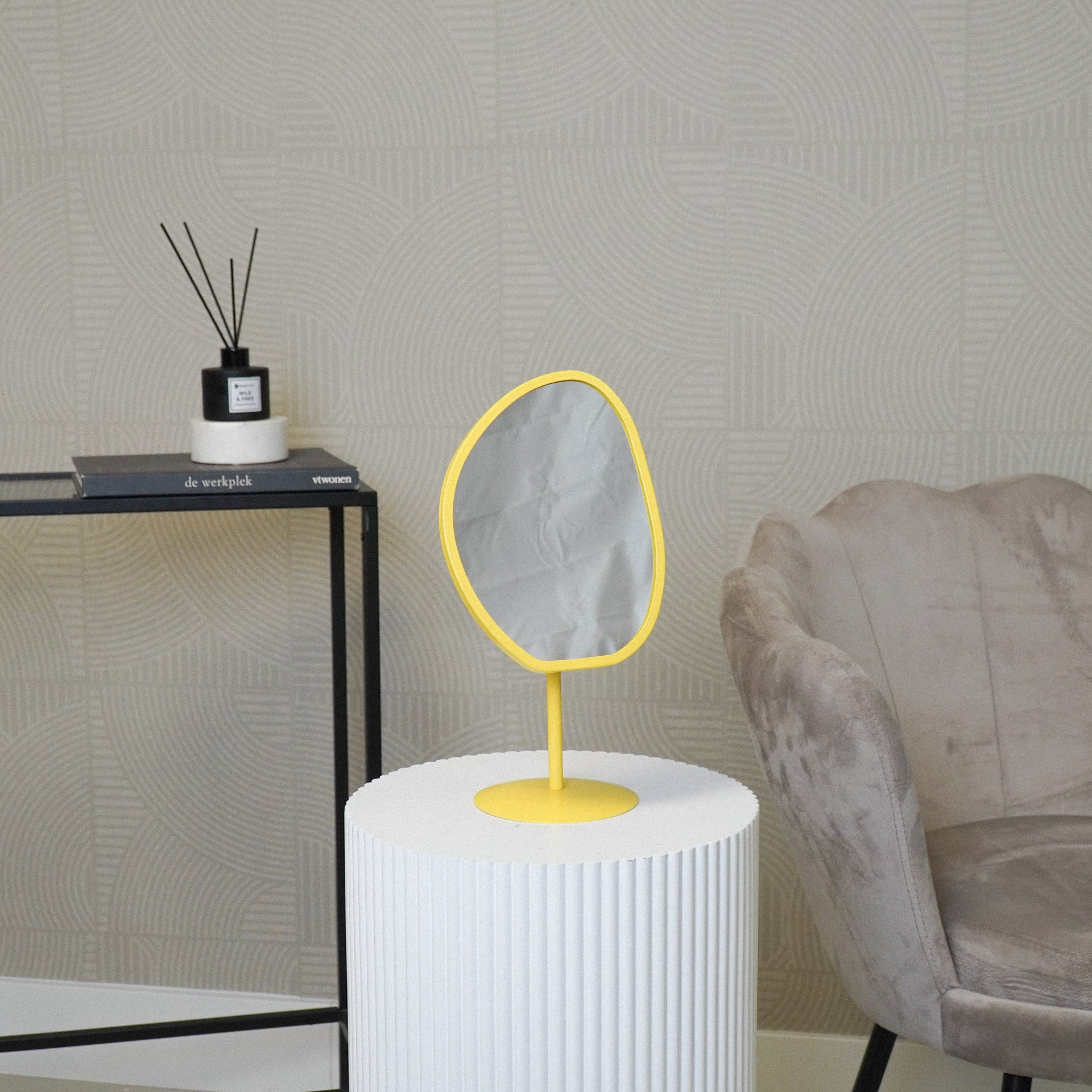 Spiegel - Make up Spiegel- Organisch Rond - Metaal - Geel - 16,5x12x31,5cm
