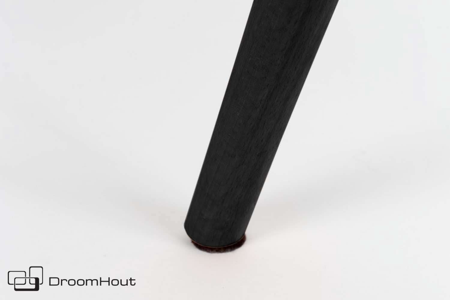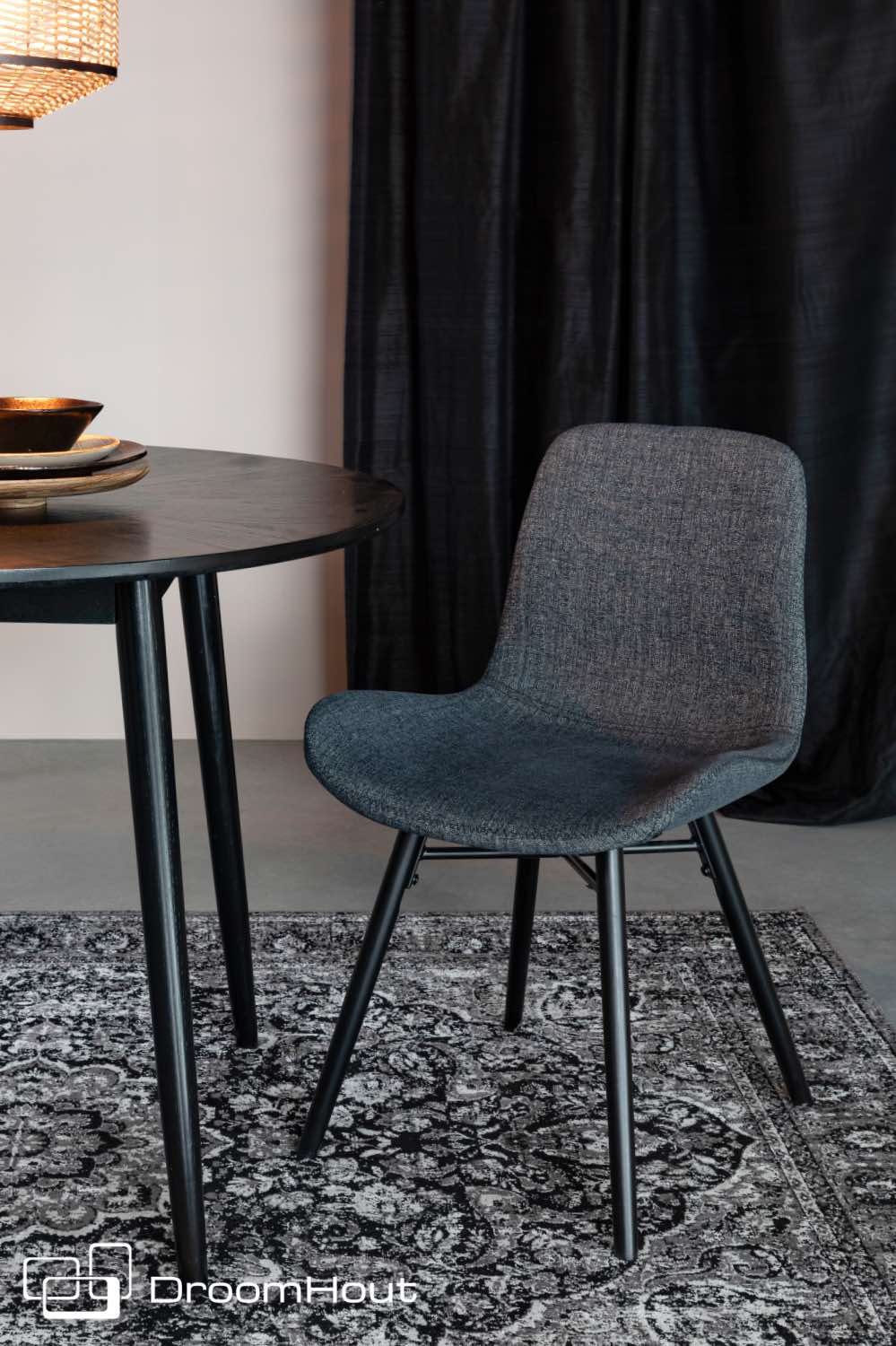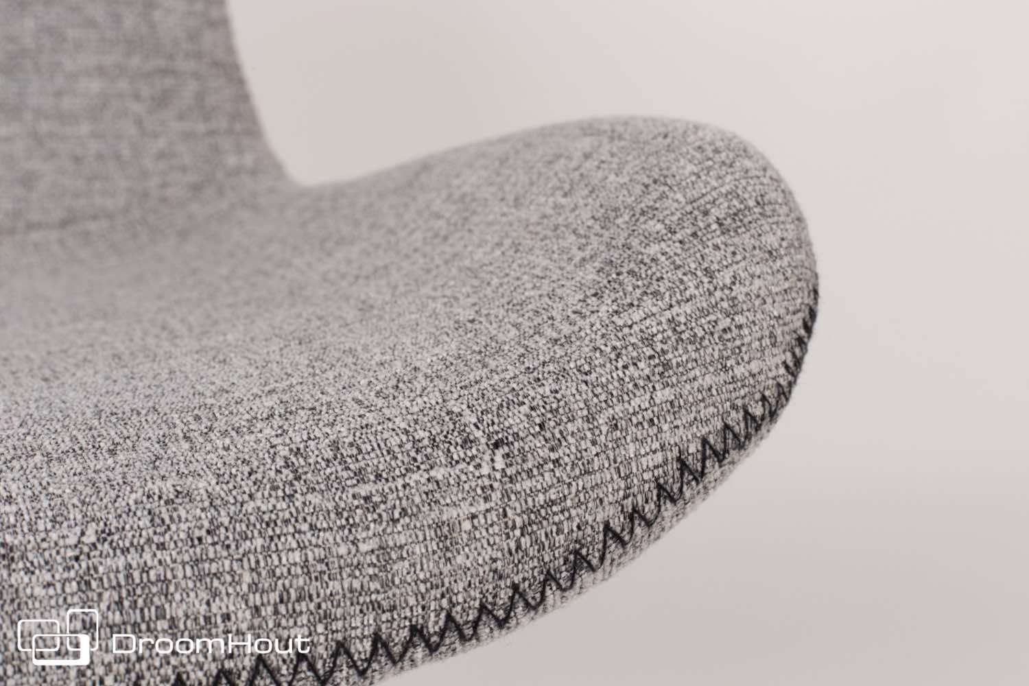 De kuip van stoel Lester is gemaakt van een voorgevormde multiplex schaal met PU-schuimvulling. Hij is licht of donker grijs bekleed met een 100% polyester stof. Heb je dat mooie detail al van dichtbij gezien? De rand van de kuip is super leuk afgewerkt met een zigzag stiksel. De poten zijn van massief beukenhout en zwart gelakt.