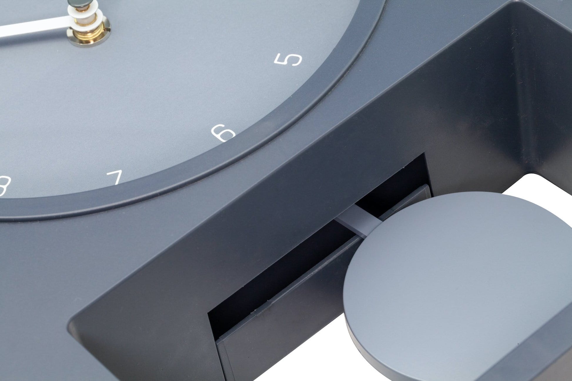 The nXt "Swing Table" is a plastic table clock (30 x 20 cm). The combination of different shapes makes this clock different and playfull. The visible sweeping pendulum gives this modern clock a classy feeling. This clock runs on 1x AA battery (not included).