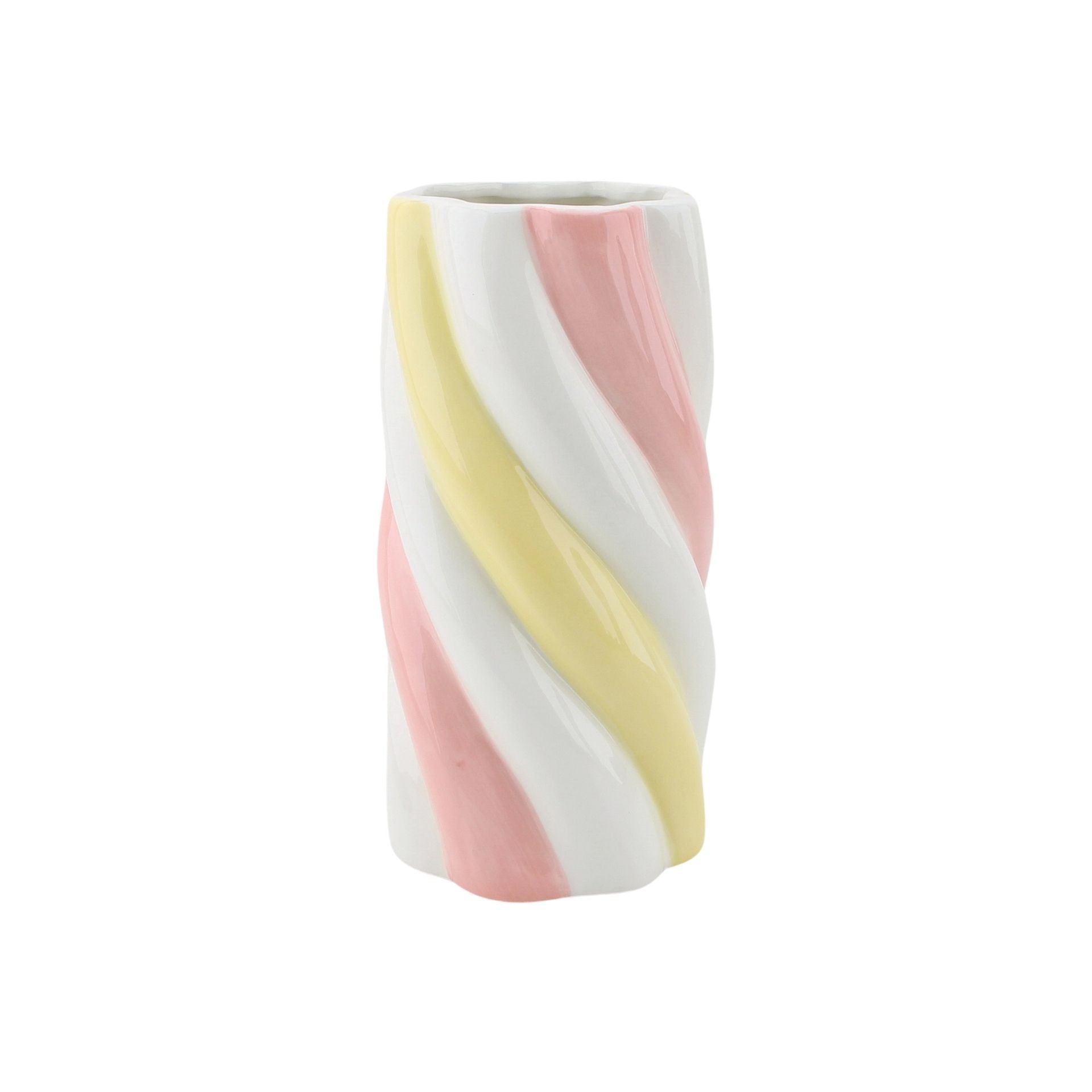 Vaas - Bloemenvaas Kabel Spek - Dolomiet - Geel/Roze - 10,5x10,5x20cm