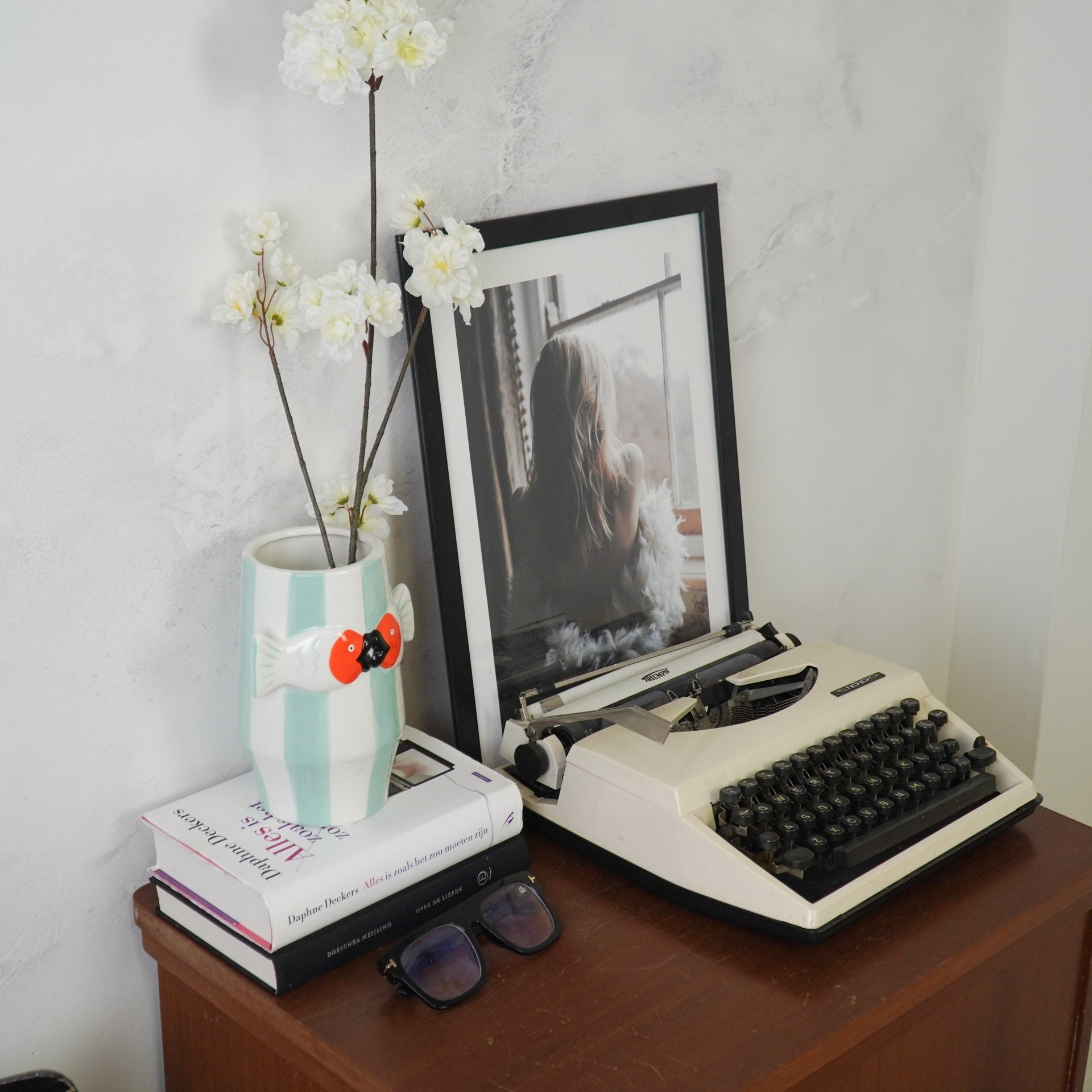Vul de bloemenvaas met bloemen in felle kleuren zoals geel, roze of blauw voor een extra zomerse uitstraling. Combineer de vaas met andere maritieme accessoires, zoals schelpen, zeesterren of kleine vaasjes in frisse tinten, voor een sfeervol strandhoekje in huis. Zet de kan op een dienblad met wat zand of steentjes voor een ultieme beach vibe!
