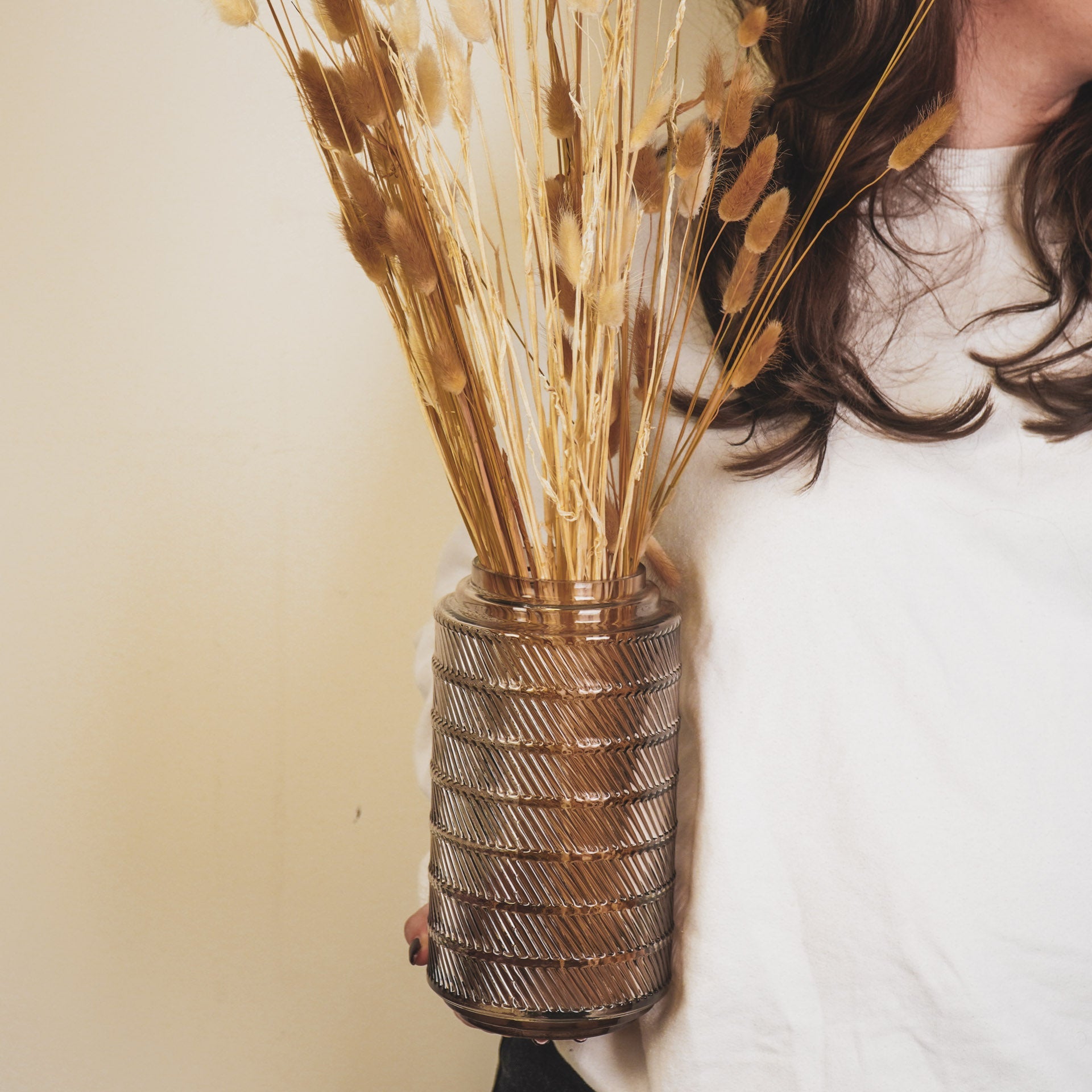 VAZEN HEB JE NOOIT GENOEG! Op zoek naar de perfecte bloemenvaas om je boeket tot leven te brengen? Deze prachtige bruine glazen vaas met reliëf van Housevitamin is precies wat je nodig hebt. Gemaakt van hoogwaardig glas en met een afmeting van 12,5x23cm, is deze vaas een echte eyecatcher in jouw interieur.