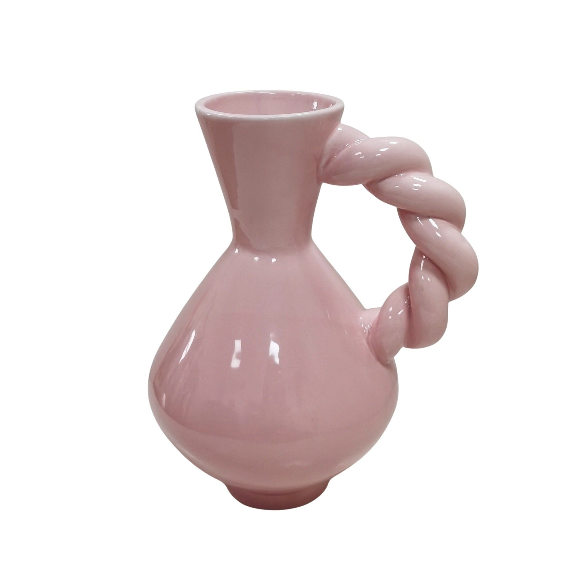 NET EVEN ANDERS Op zoek naar een unieke vaas of kan die jouw interieur compleet maakt? Ontdek dan deze prachtige licht roze vaas. Met gedraaid handvat en pastel kleurige afwerking is deze vaas een echte eyecatcher in huis.