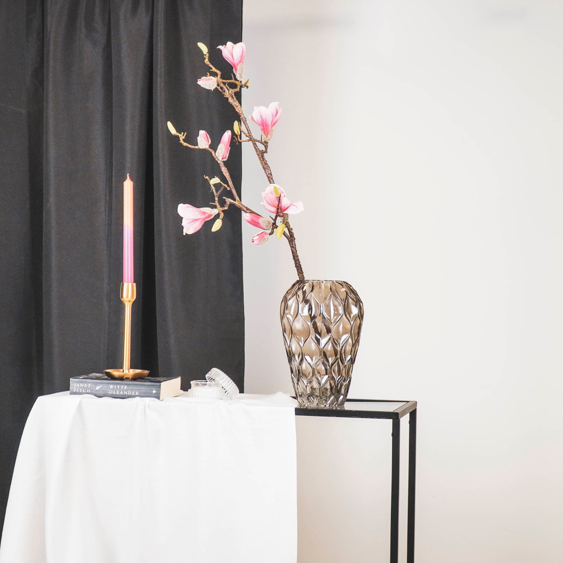 Styling tip: Ga los met fel gekleurde bloemen of hou het simpel met een aantal takken en/of bloemen