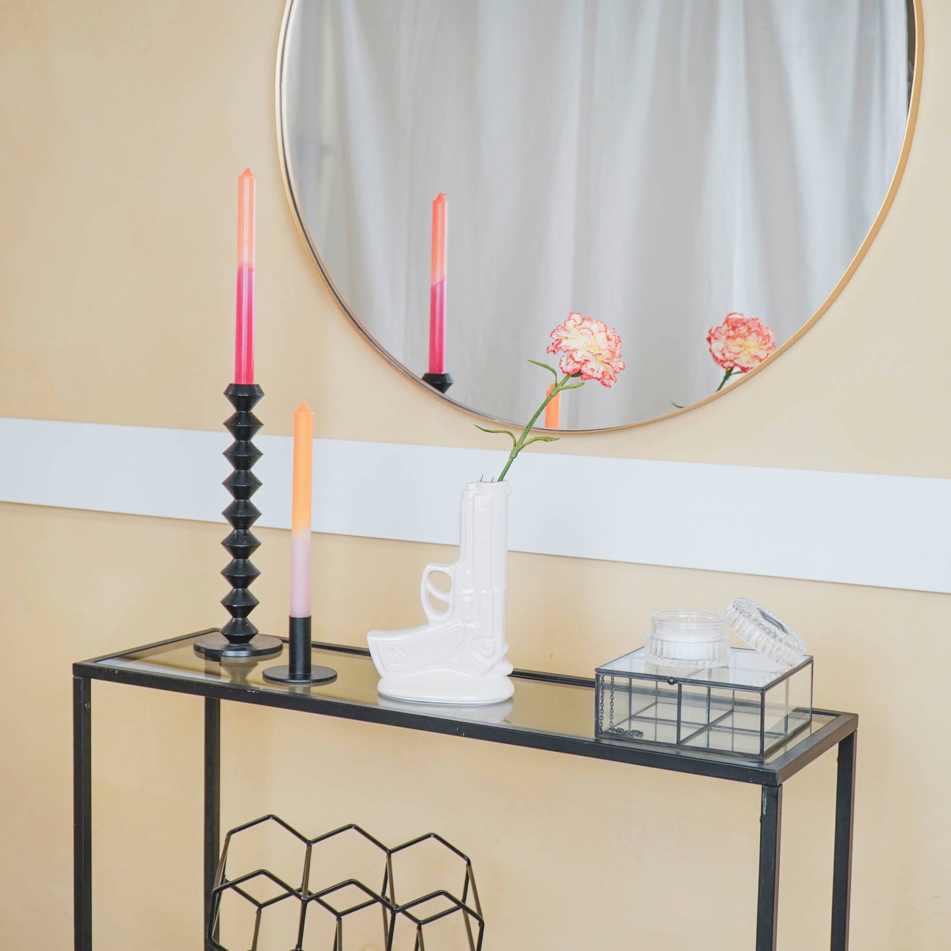 Styling tip: Ook zonder bloemen staat de pistool vaas leuk, zet hem daar neer waar nog iets stoers nodig is.