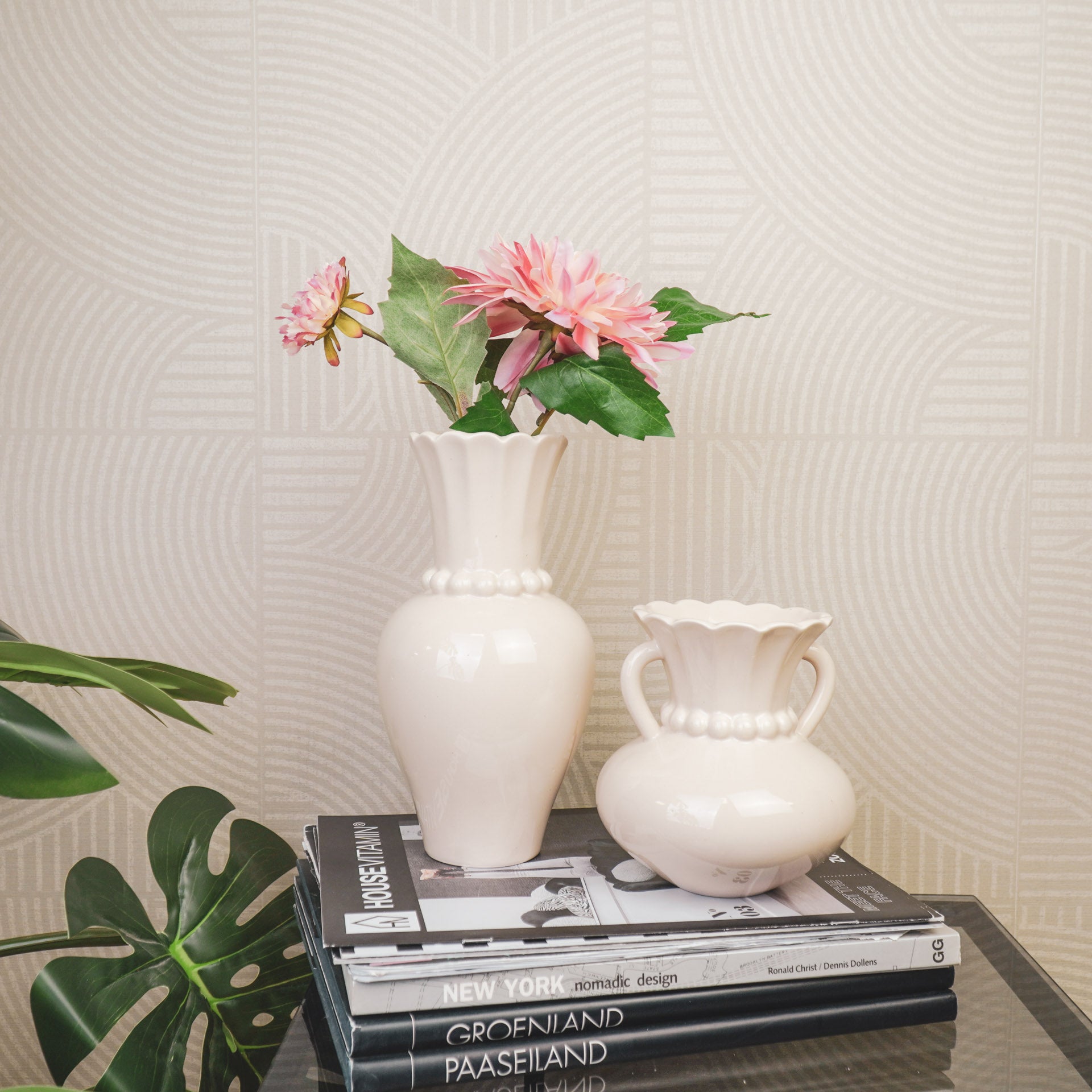 Styling tip: De beige parel vaas is een prachtige basic waarmee vele kleuren gecombineerd kunnen worden. Ga voor felle kleuren of juist rusitge lichte kleuren: alles kan!