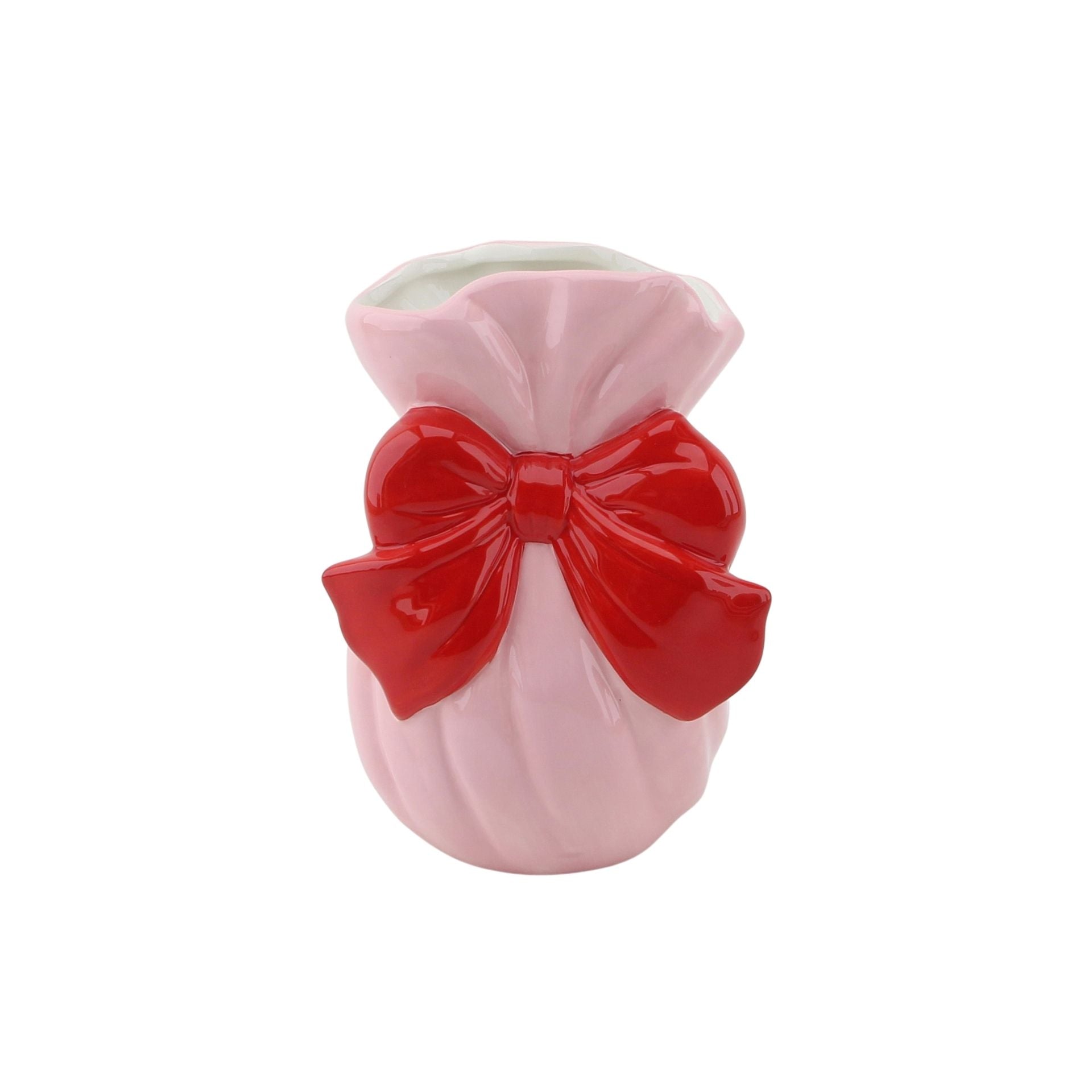Vaasje - Met Strik - Keramiek - Roze/Rood - 11x10x16cm