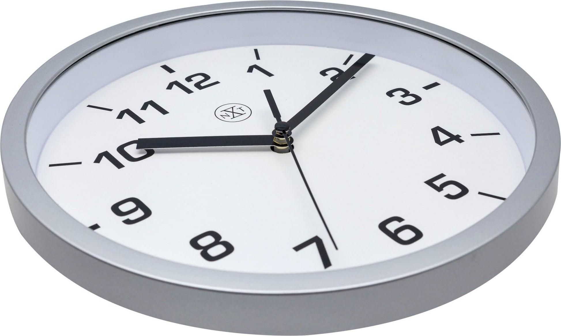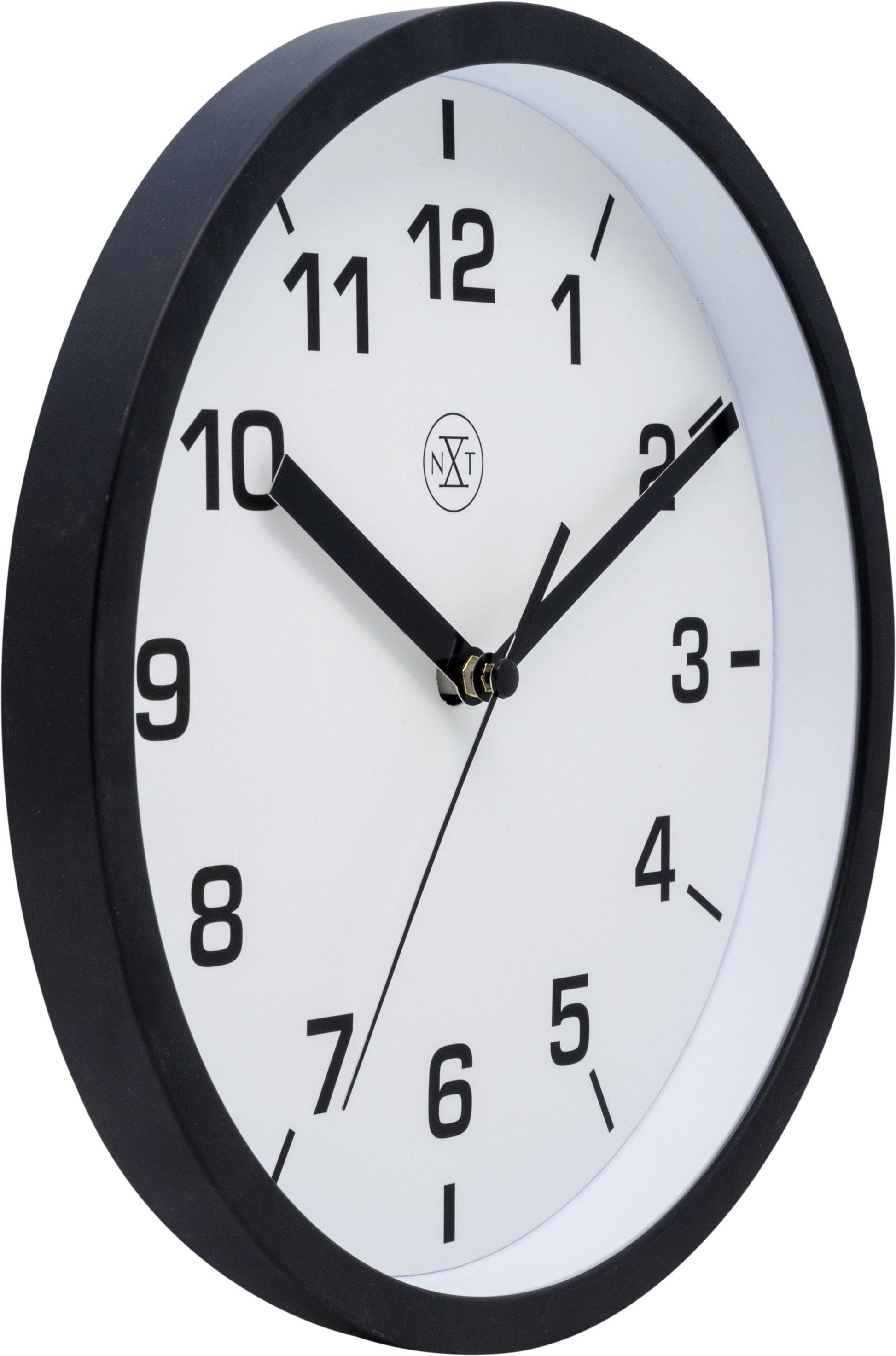 The nXt "Easy Small" is a plastic white wall clock (Ø20 cm). The dial has clear numbers and bold hands. It runs on 1x AA battery (not included).
