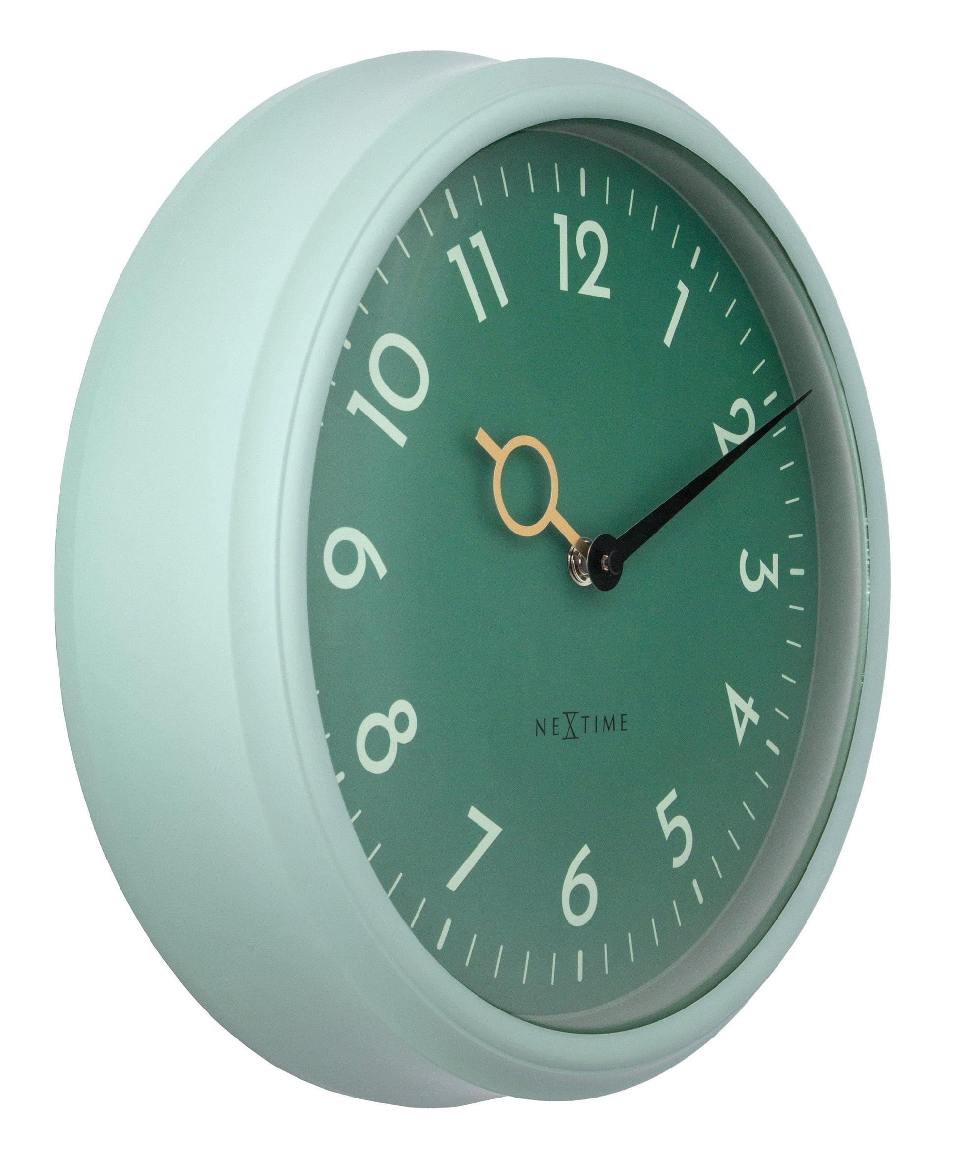 NeXtime 'Golden Hour Wall' clock 30.5cm is unique with the dome glass lens in a modern, simplistic design. Made from durable ABS, its soft peach or teal hue reflects the peaceful essence of the golden hour. This silent, minimalist timepiece goes well with diverse interiors and operates on 1 x AA battery (not included).