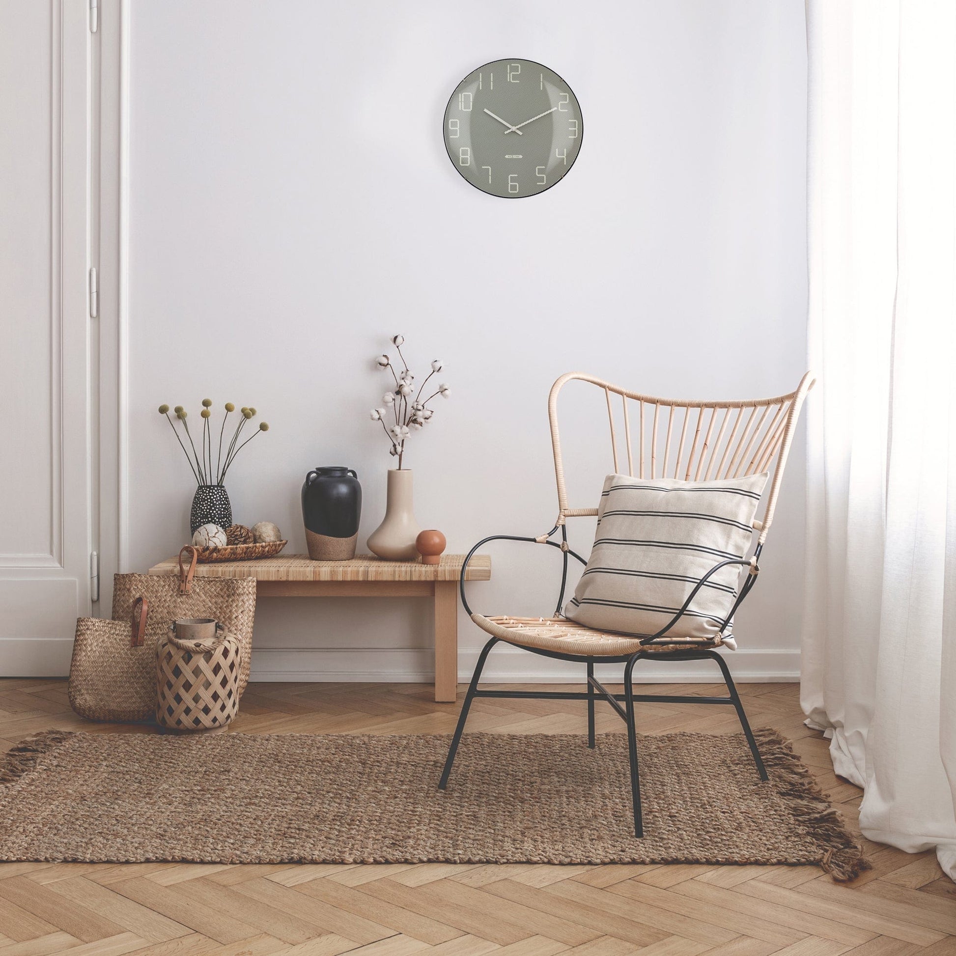 The NeXtime Shade silent wall clock (35cm) has a dome shaped glass cover. It features a retro digital pattern of shady lines and arabic numbers in a trendy colour. Designed by Studio So-Lo, it offers a subtle coolness. This clock uses 1 x AA battery (not included)