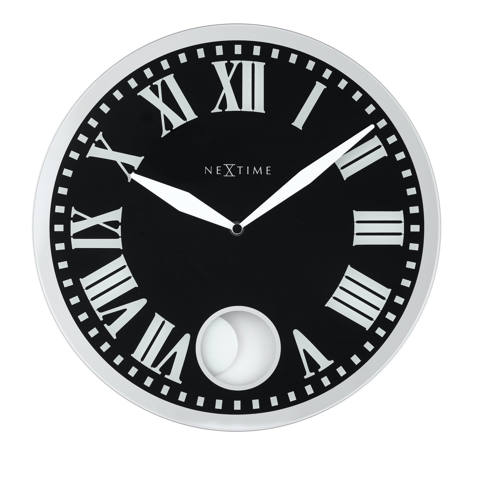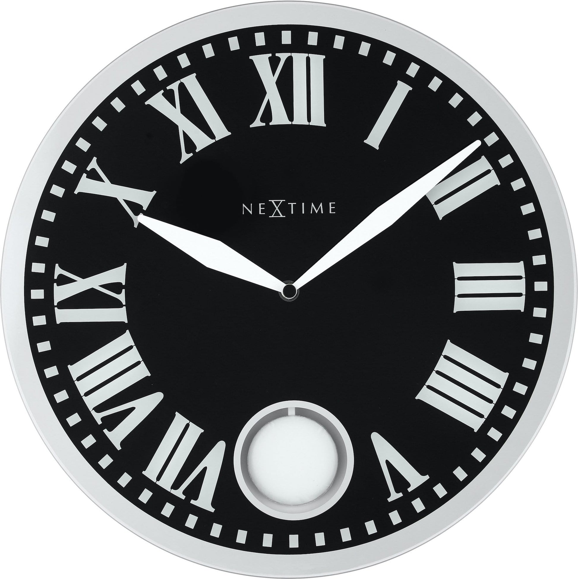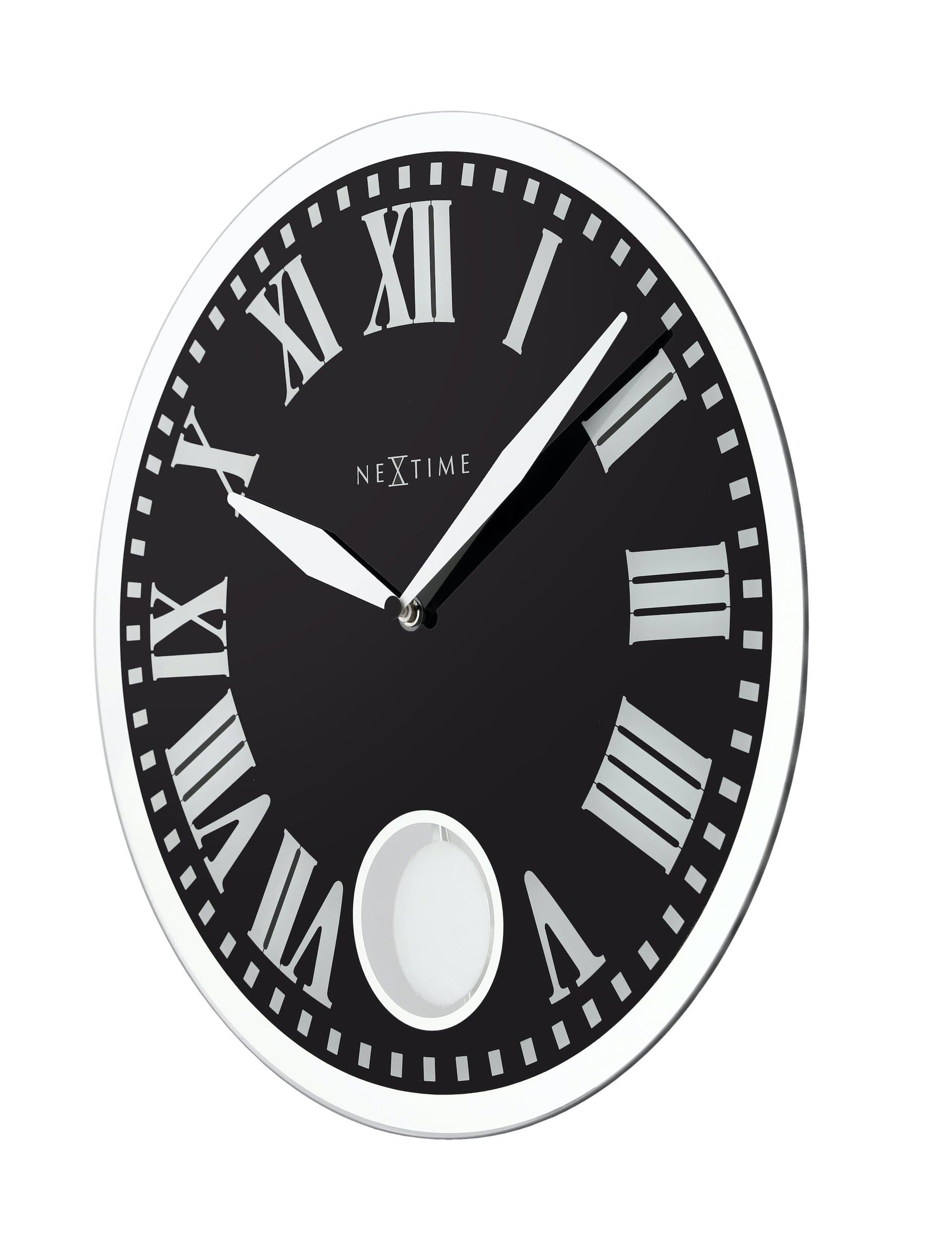 The NeXtime "Romana" is a wall clock made of glass. This clock has a pendulum that sweeps gently behind the clock which bring every interior to life. The clock dial is decorated with modern and stylish roman numerals. It runs on 1 AA battery (not included).