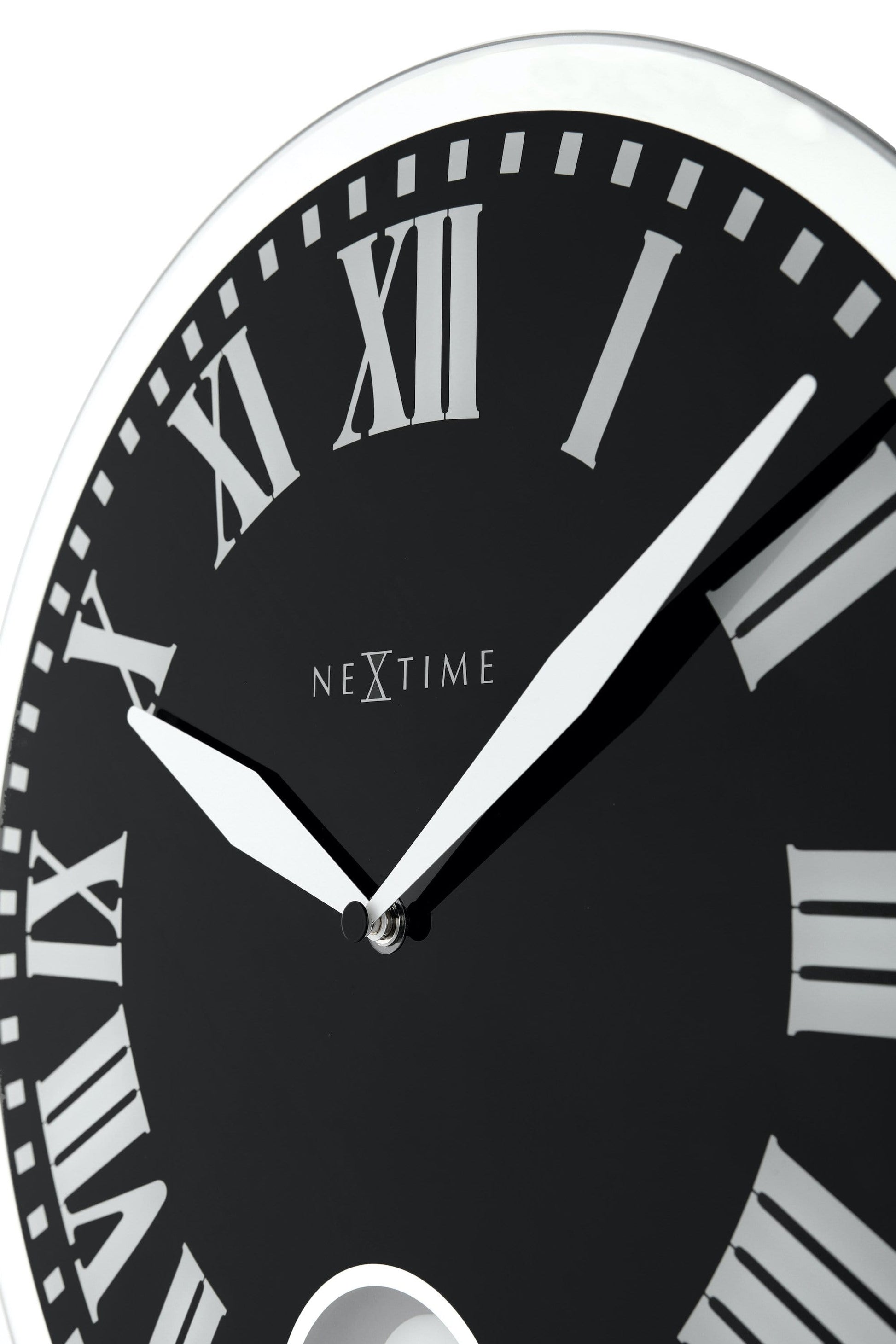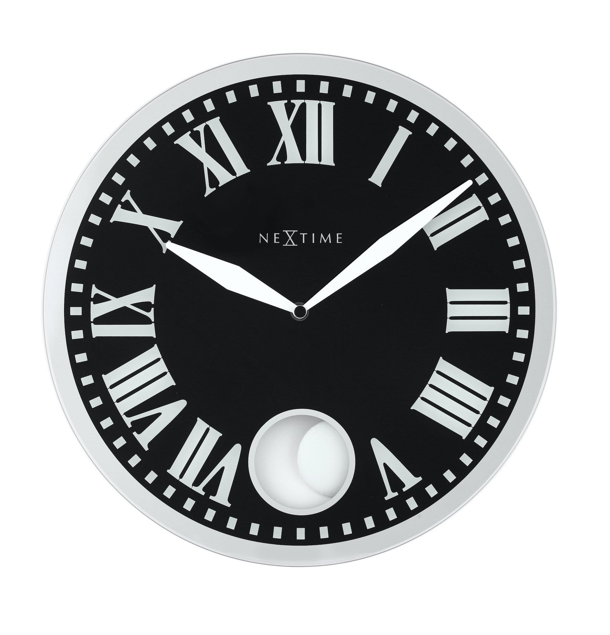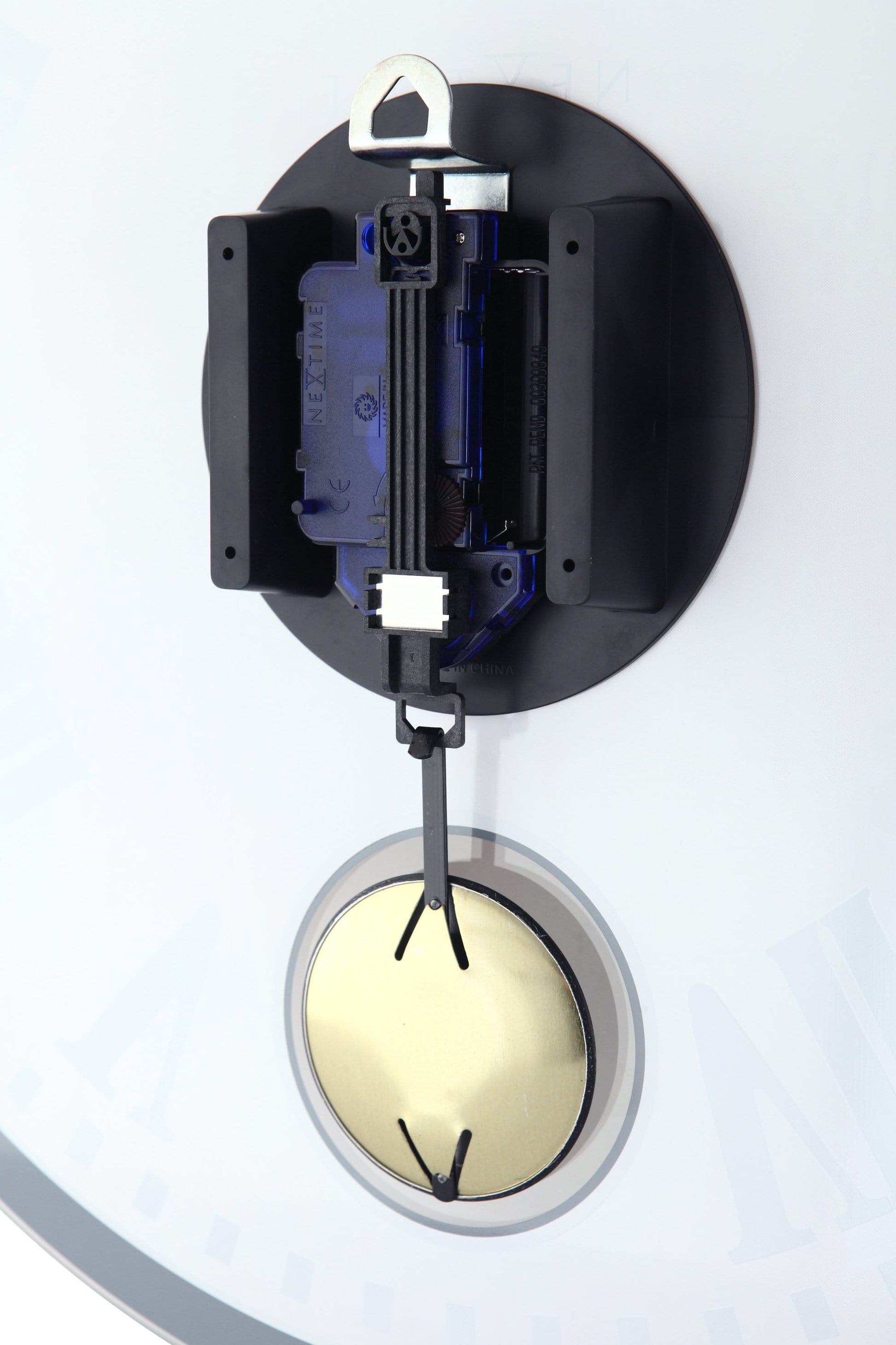The NeXtime "Romana" is a wall clock made of glass. This clock has a pendulum that sweeps gently behind the clock which bring every interior to life. The clock dial is decorated with modern and stylish roman numerals. It runs on 1 AA battery (not included).
